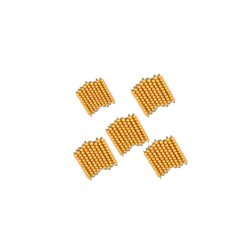 Čtyřicet pět desítkových tyčinek je nezbytným pokračováním práce se zlatými jednotkami. Díky perlové barvě a kvalitnímu zpracování usnadňují dětem pochopení principů matematiky a rozvoj počáteční aritmetiky.