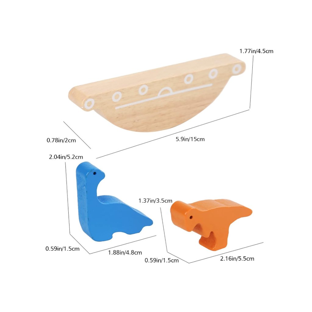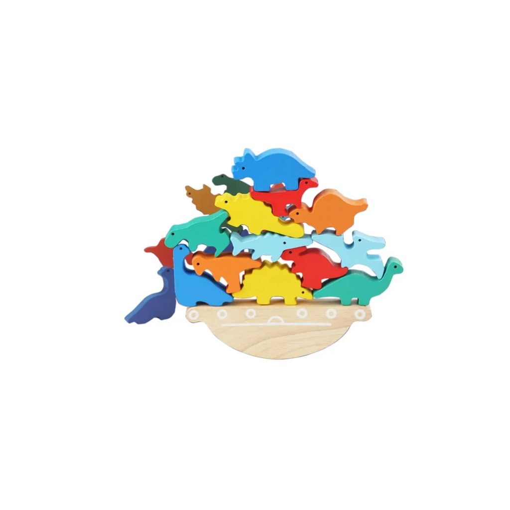 Balanční loď s dinosaury od značky Adena Montessori je zábavná dřevěná hra, která pomáhá dětem rozvíjet koordinaci pohybů, trpělivost a logické myšlení. Děti mají za úkol naskládat dřevěné figurky dinosaurů na kolébající se loď tak, aby udržely rovnováhu a žádná figura nespadla.