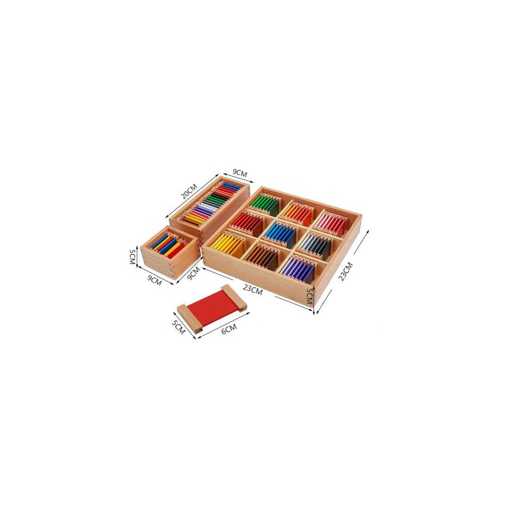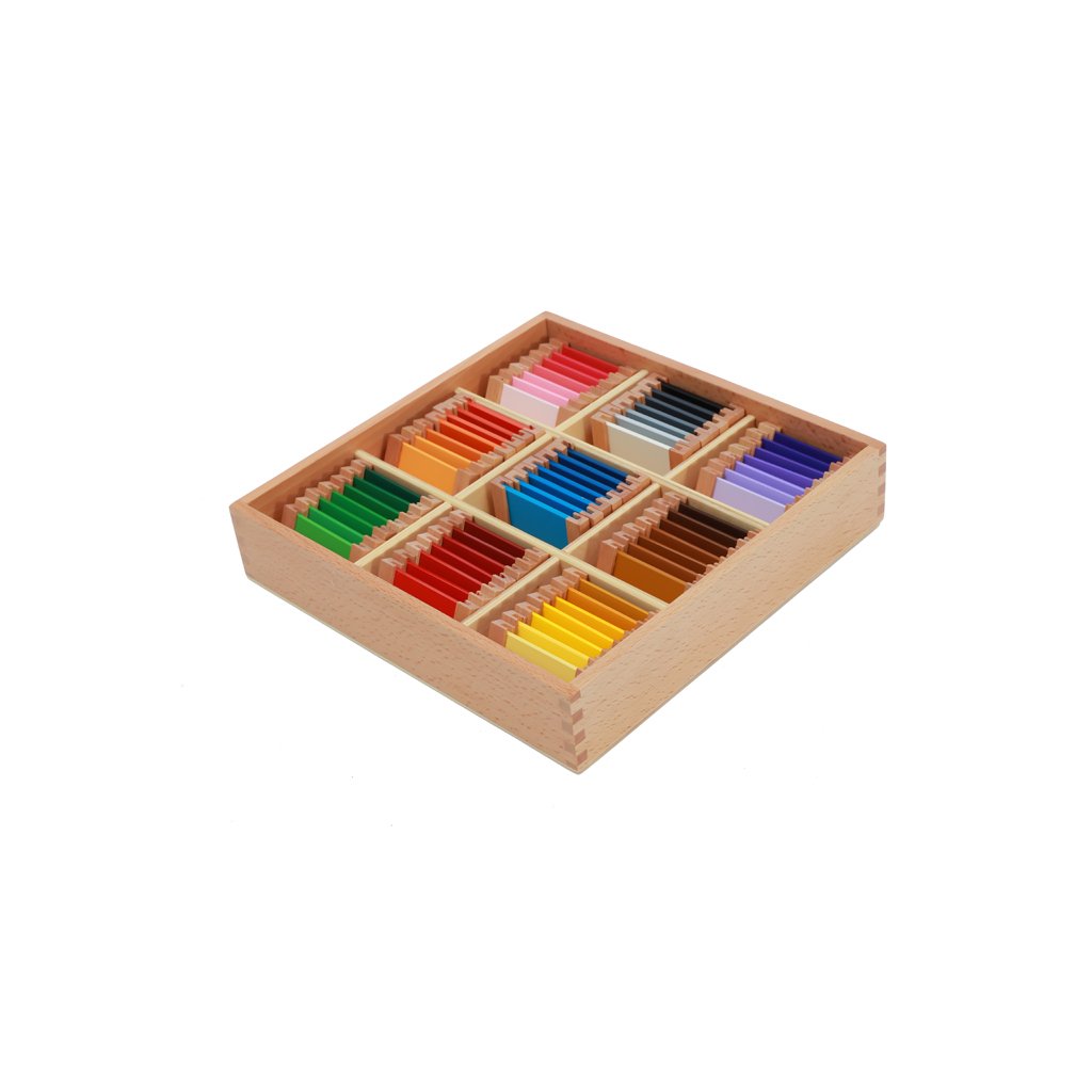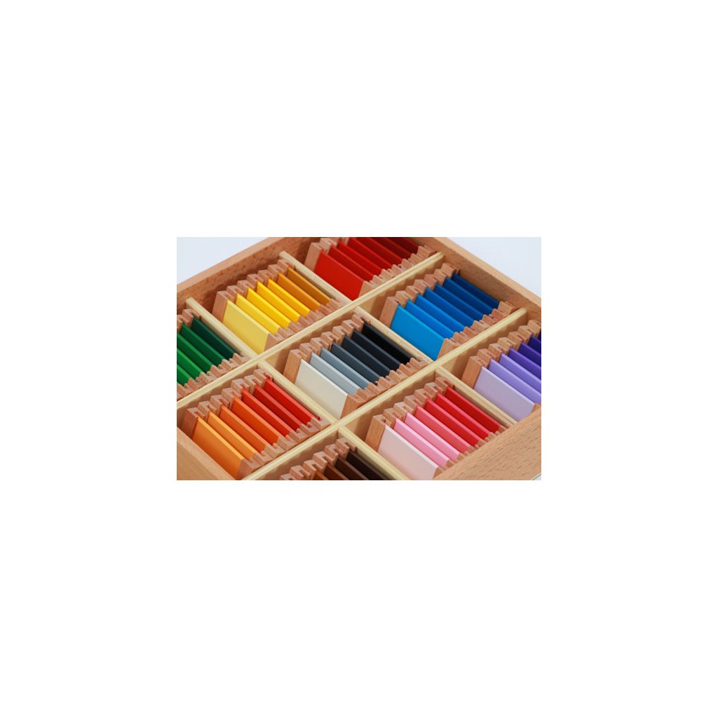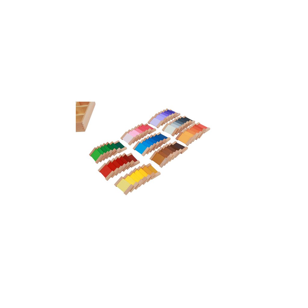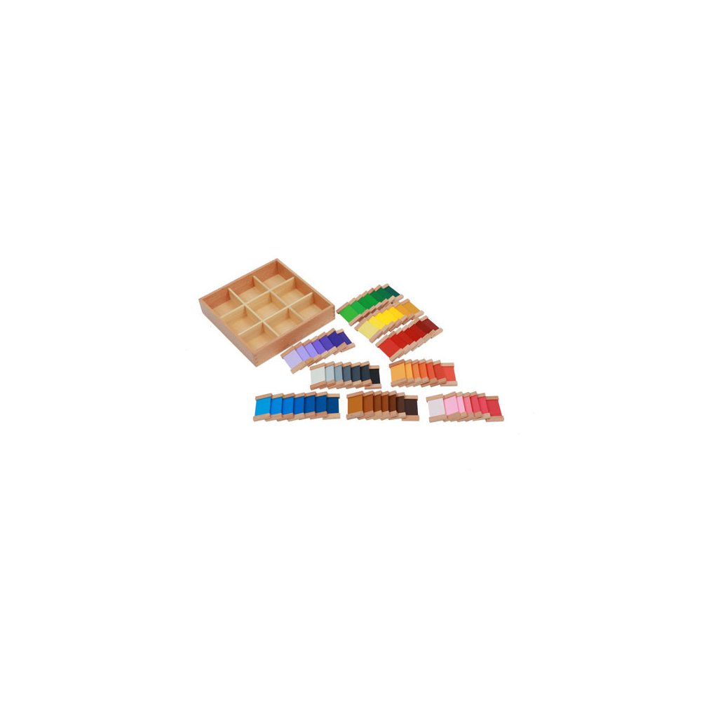 Sada obsahuje 63 destiček rozdělených do 9 barevných skupin – červená, modrá, žlutá, zelená, oranžová, růžová, hnědá, fialová a šedá. Každá barva je zastoupena v 7 odstínech od nejsvětlejšího po nejtmavší. Destičky mají rámečky z bukového dřeva, které usnadňují manipulaci bez dotyku barevné plochy.