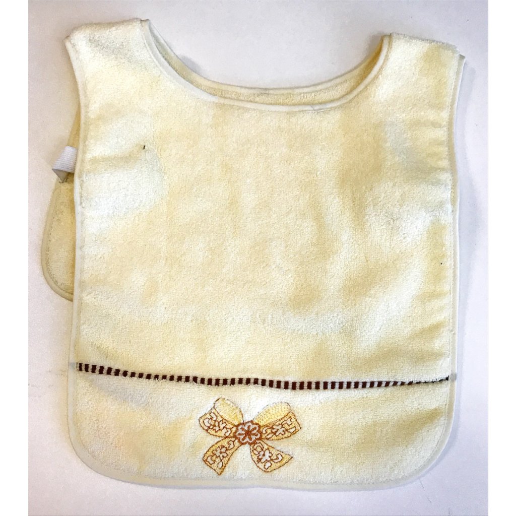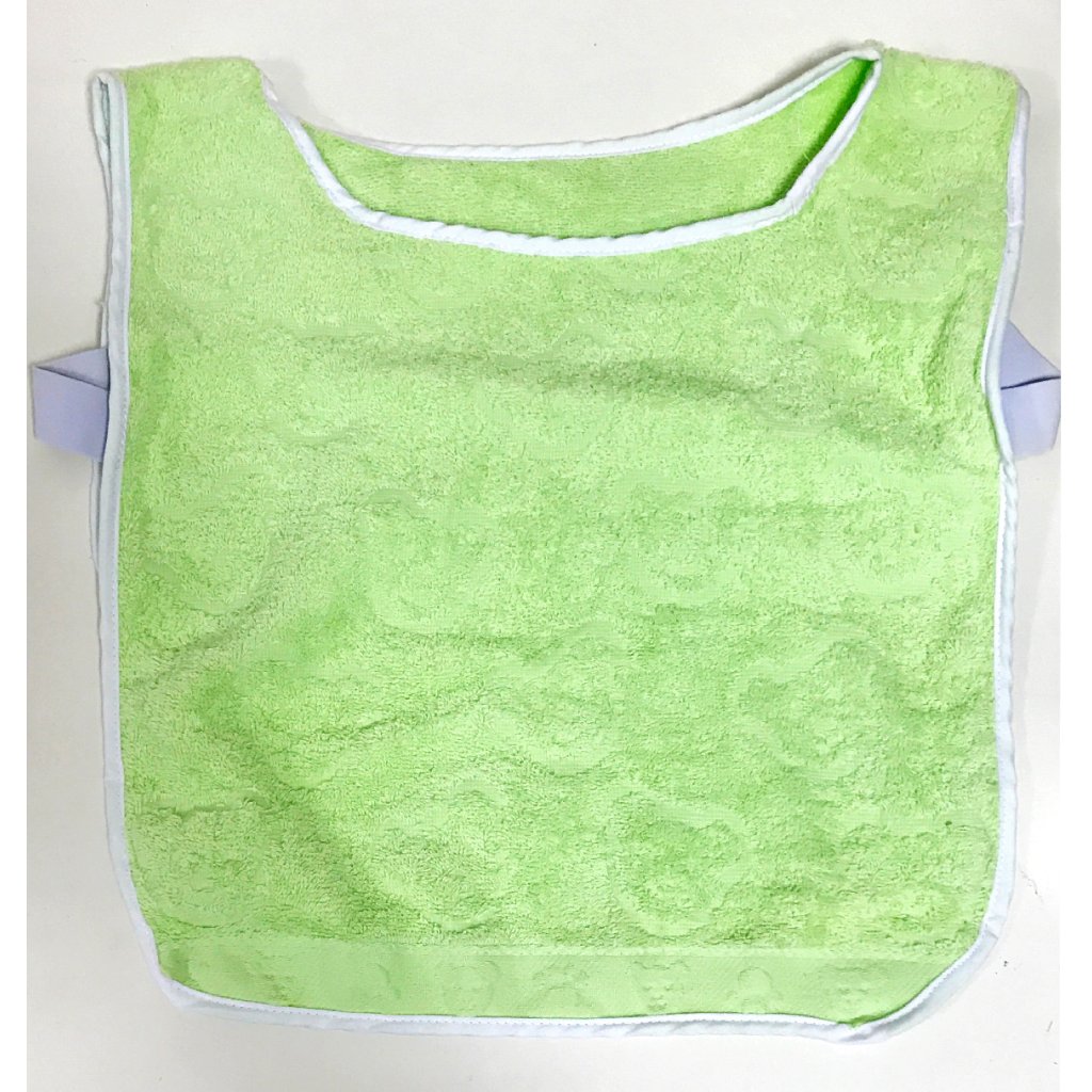 Praktická froté zástěrka navlékací přes hlavu, ideální pro nejmenší děti při výtvarných nebo pracovních aktivitách. Chrání přední část těla a díky pružným gumičkám po bocích dobře sedí a neomezuje v pohybu. Zadní díl je kratší, končí pod lopatkami, aby dětem nepřekážel při sezení.