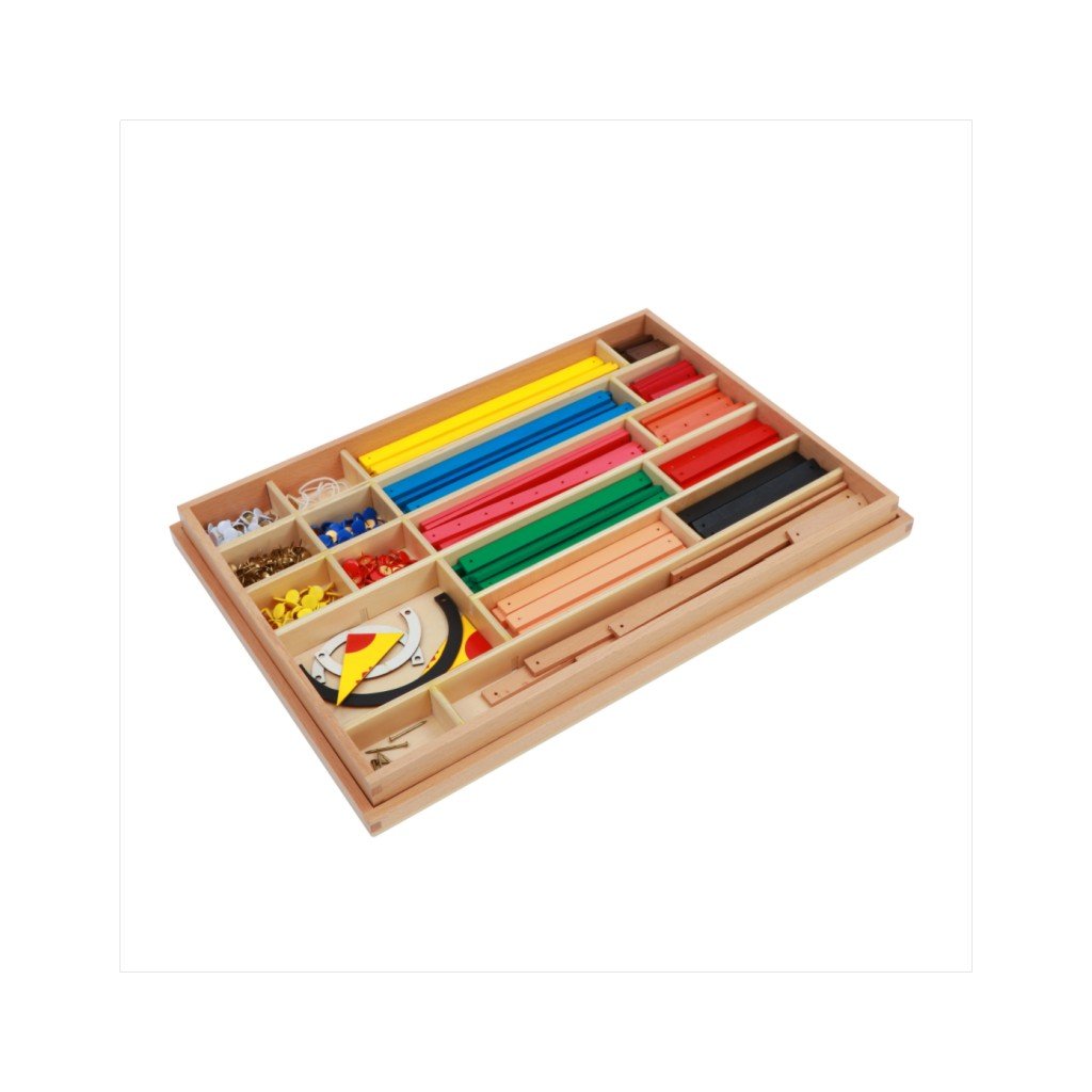 Tato rozsáhlá pomůcka umožňuje dětem prakticky zkoumat geometrii: skládají rovinné útvary, konstruují trojúhelníky, čtverce, lichoběžníky a kružnice, měří úhly a délky, a pozorují geometrické vztahy