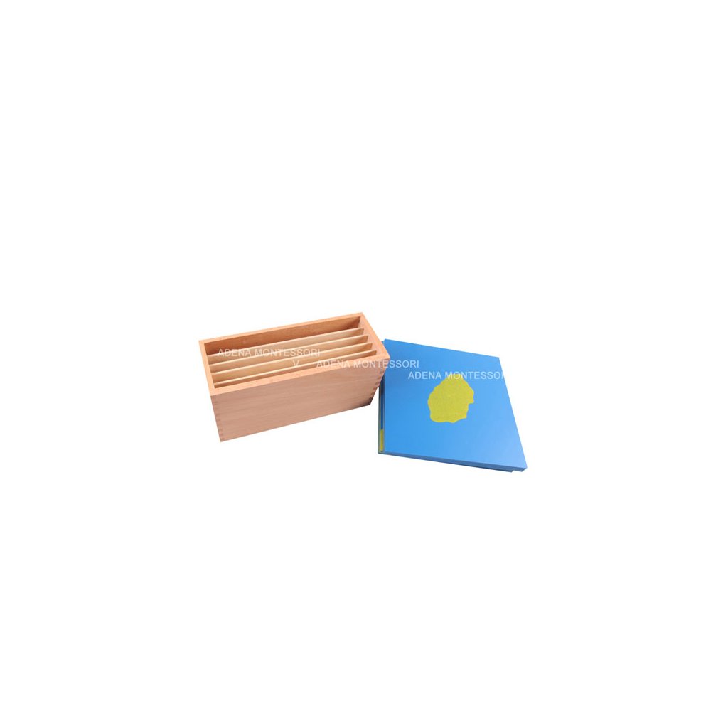 Tato sada obsahuje 10 dřevěných karet, které znázorňují základní tvary pevniny a vodních ploch (např. ostrov – jezero, poloostrov – záliv atd.). Pomáhá dětem porozumět základním geografickým pojmům pomocí konkrétního a smyslového vnímání.