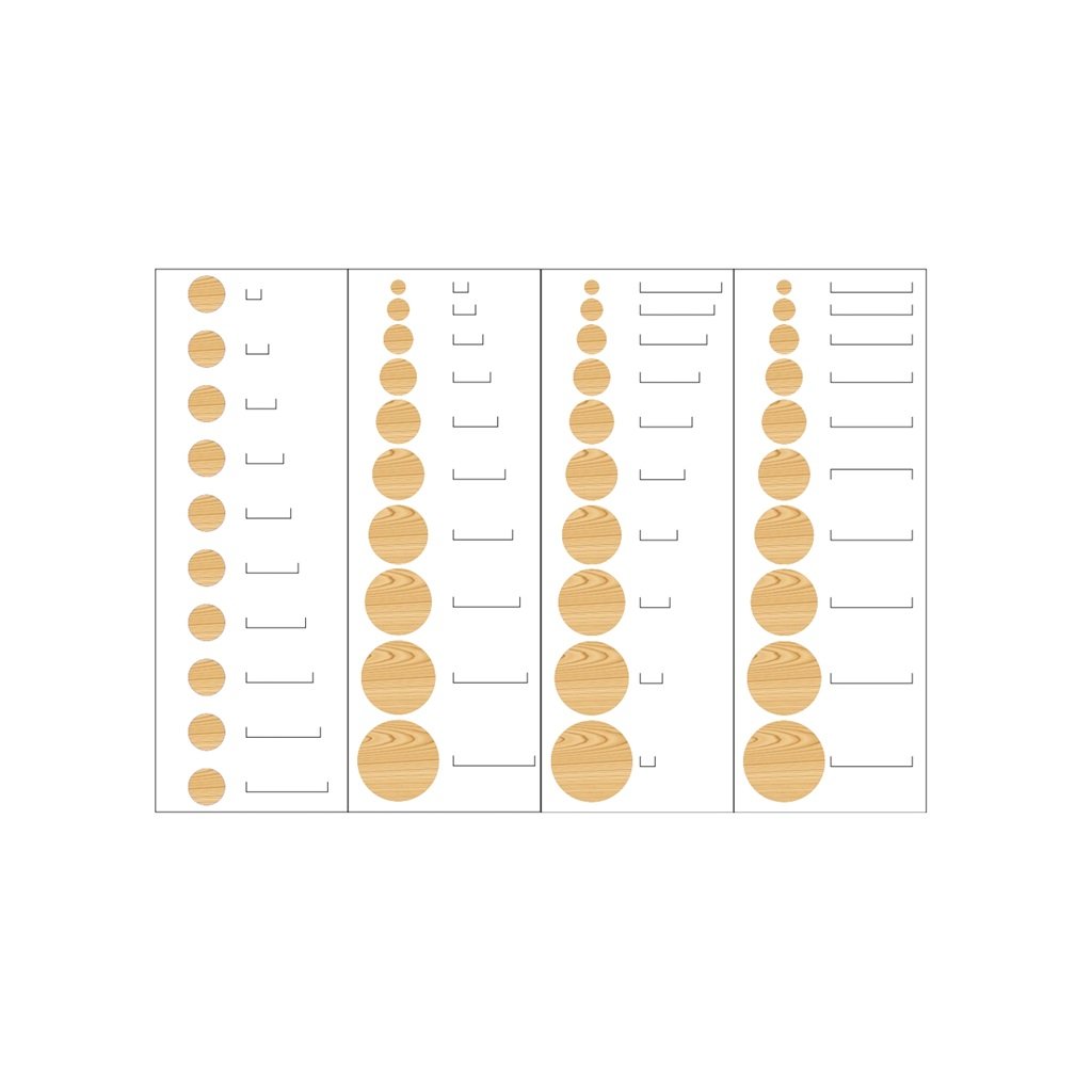 4 kontrolní karty k dřevěným válečkům s úchyty na tvrdém papíře. (kombinace s produktem A020).