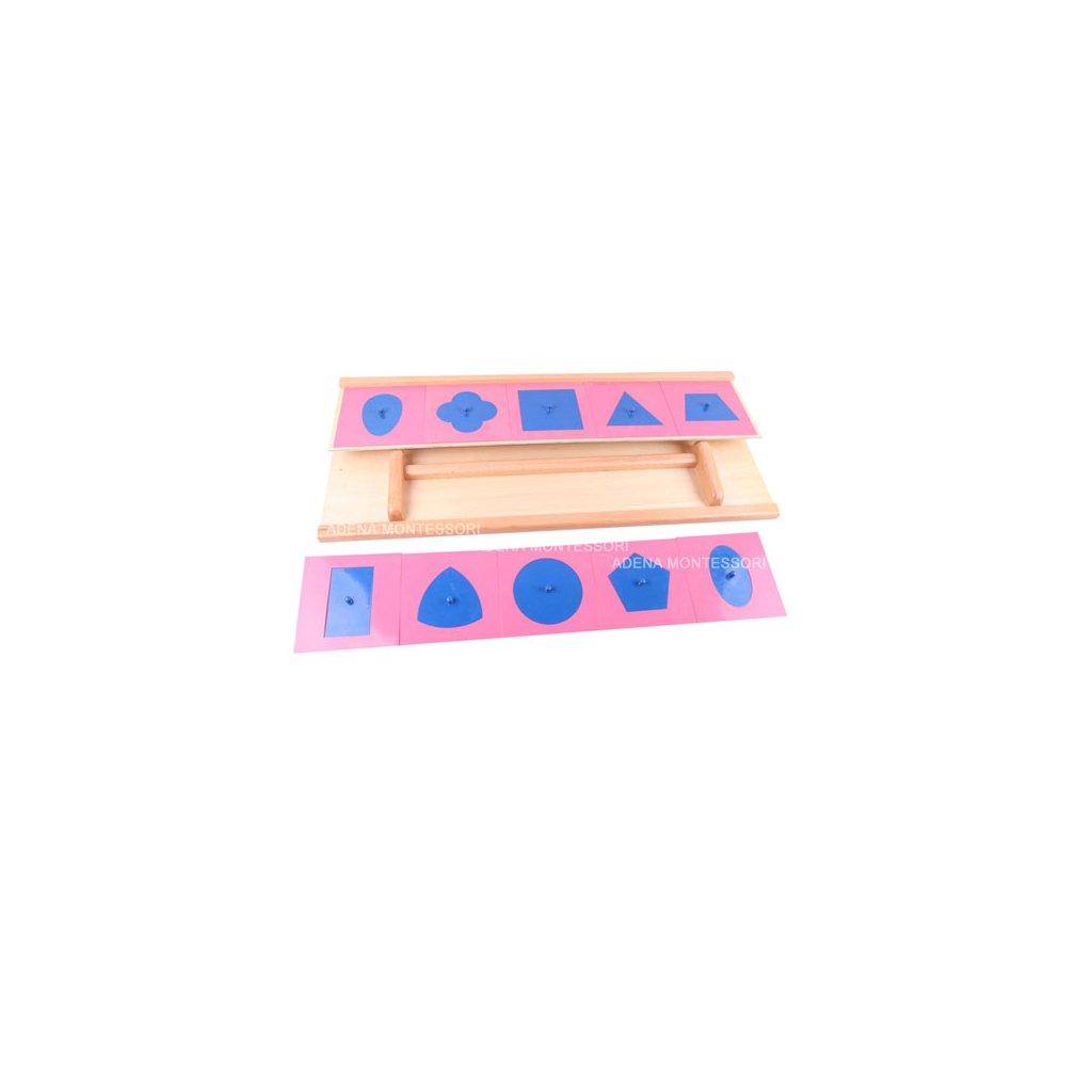 Jedná se vždy o růžovou podložku tvary a modrý tvar s úchytem: kruh, elipsa, čtverec, obdélník, trojúhelník, lichoběžník, pětiúhelník, trojúhelník se zakřivenými stranami, vajíčko a čtyřlístek.