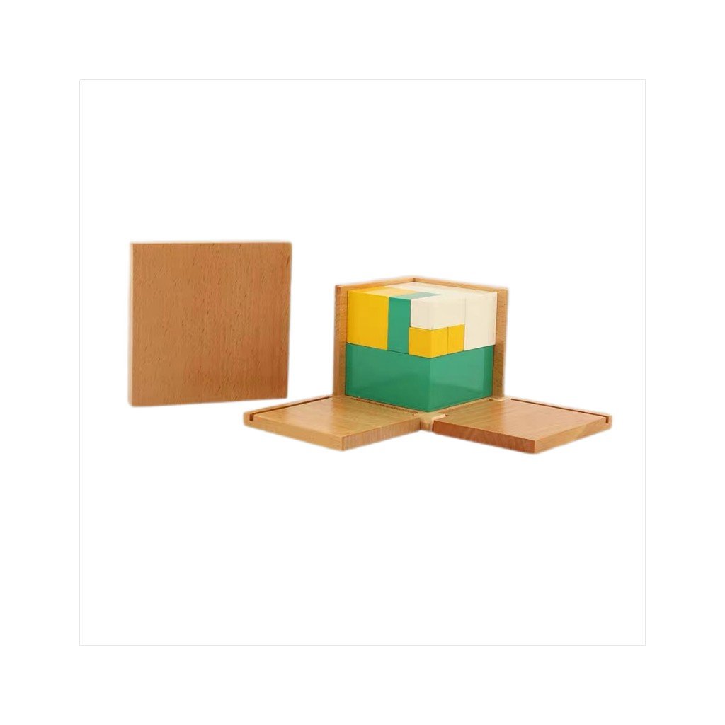 Materiál pomocí svých částí (krychle a hranoly) demonstruje druhou mocninu. Krychle je v dřevěné krabičce.