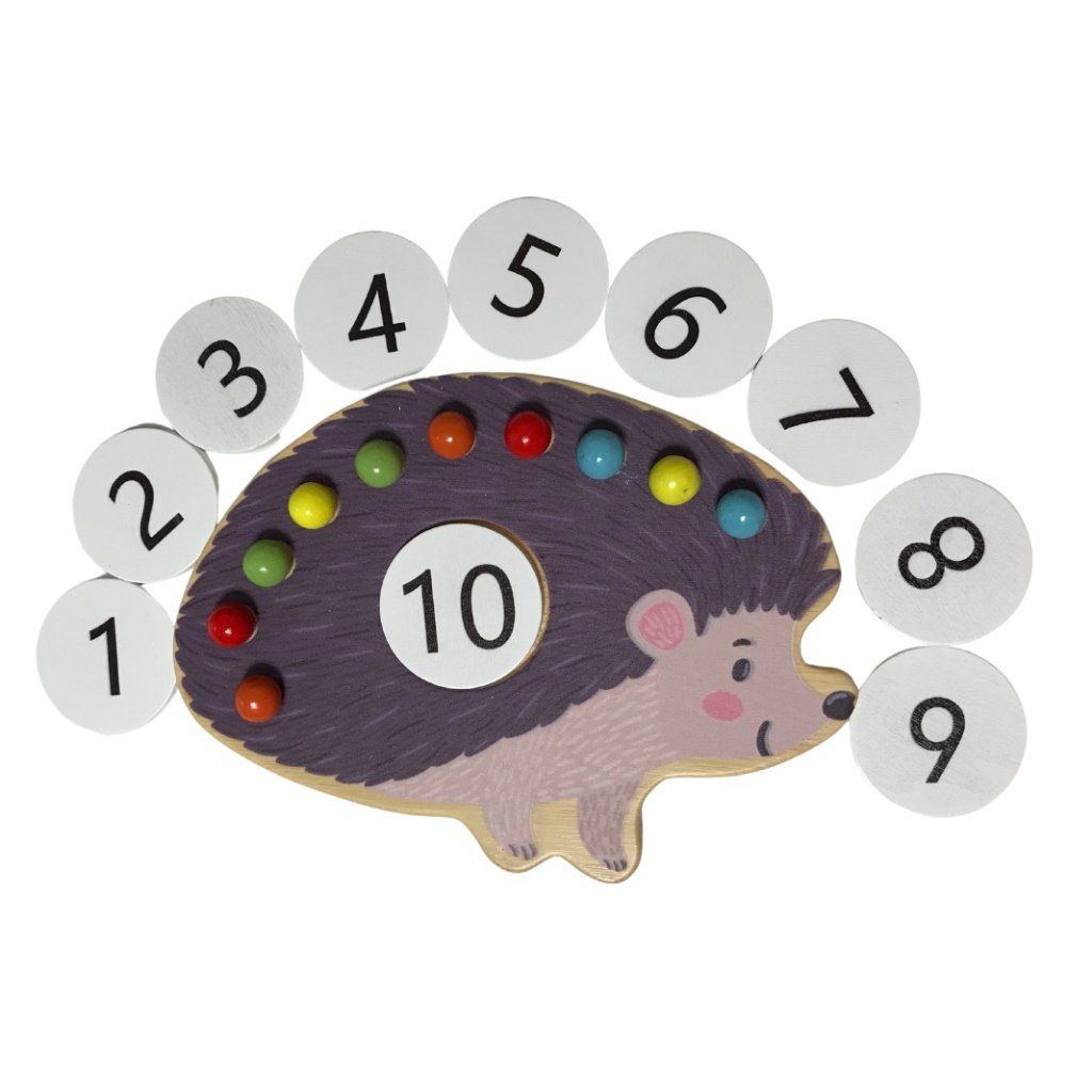 Tato pomůcka spojuje počítání, barvy a hmatové vnímání – dítě nejen chápe číselnou hodnotu, ale učí se i přesnosti a trpělivosti. Díky hravému designu v podobě ježka působí učení přirozeně a motivuje děti k opakovanému používání.