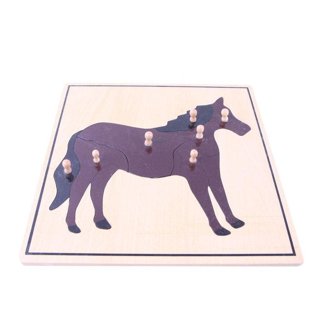 Puzzle kůň pro děti a jejich rozvoj jemné motoriky a poznávání světa okolo nás. Rozměr : 23,8 X 23,8 cm Jednotlivé dílky puzzle mají krásné dřevěné úchyty pro snadný úchop a rozvoj jemné motoriky. Sada je určena pro Montessori vzdělávání dětí pod dohledem pedagoga se znalostí principů a postupů. Pomůcka vhodná pro děti 3+. Vyrobeno z nezávadných a certifikovaných materiálů s certifikátem CE. Pomůcka může obsahovat malé součásti které jsou nebezpečné a děti je mohou vdechnout nebo spolknout.