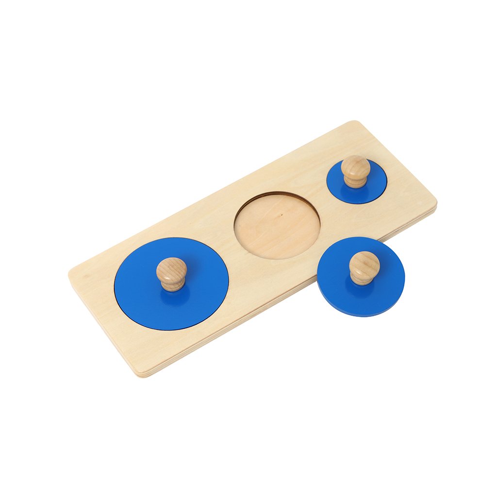 Tato Montessori vkládací deska nabízí tři barevné kruhy v různých velikostech, určené pro trénink úchopu, koordinace oko–ruka i rozpoznávání velikosti. Široká podložka z bukového dřeva zaručuje stabilitu a hladký, bezpečný povrch.