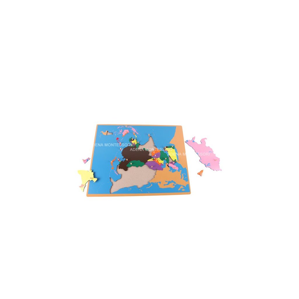 Kvalitní puzzle z bukového dřeva na dřevěné desce. Velikost cca A2 (45x57cm)