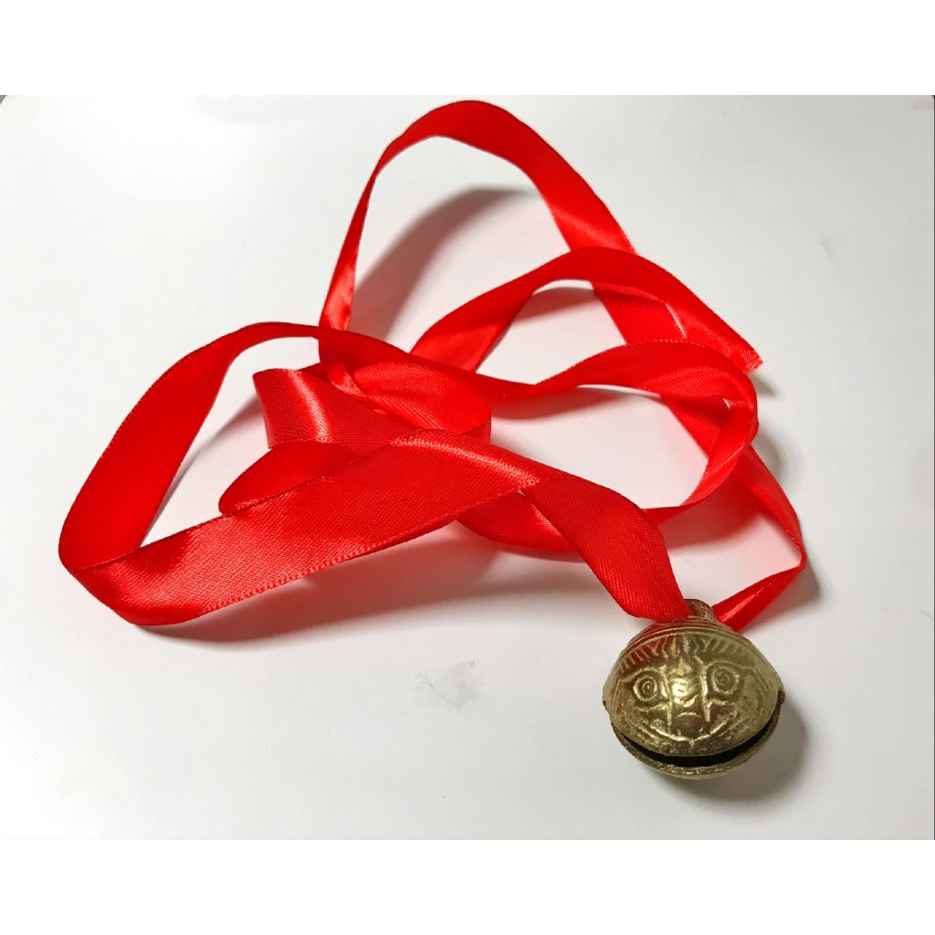 Kovová rolnička na barevné stuze. Motessori senzorická hračka na závěs pro aktivaci nejmenším miminek v postýlce.