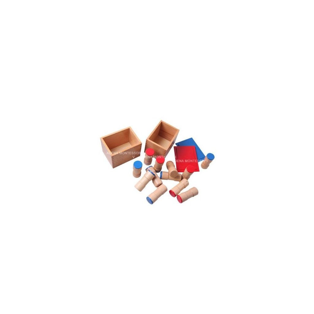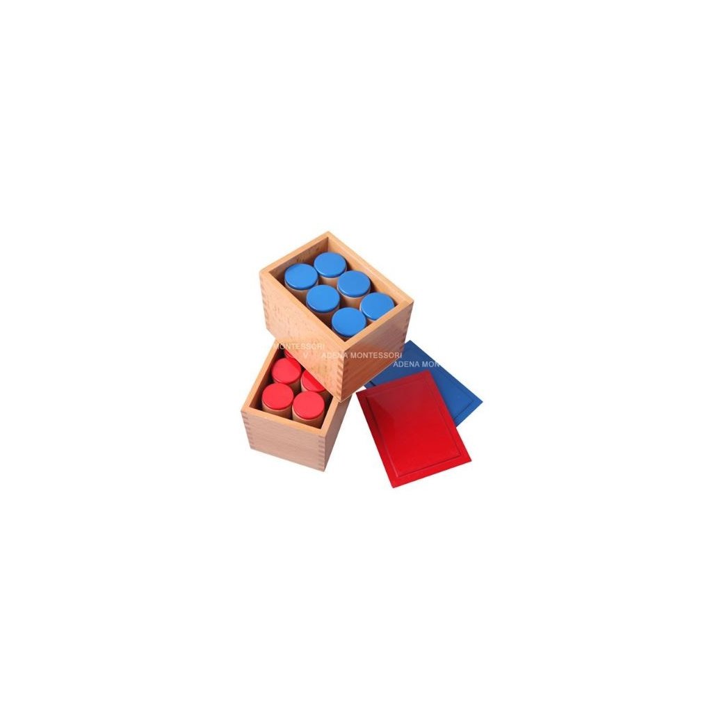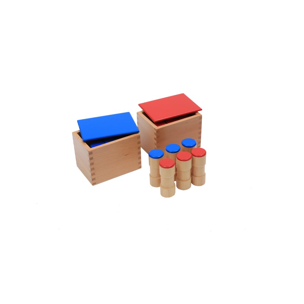 Sluchové válečky od Adena Montessori jsou klasická pomůcka smyslové výchovy zaměřená na rozvoj sluchového vnímání, pozornosti a koncentrace. Sada obsahuje 2 dřevěné krabičky – jednu s červeným víkem, druhou s modrým – a v každé z nich je 6 válečků.