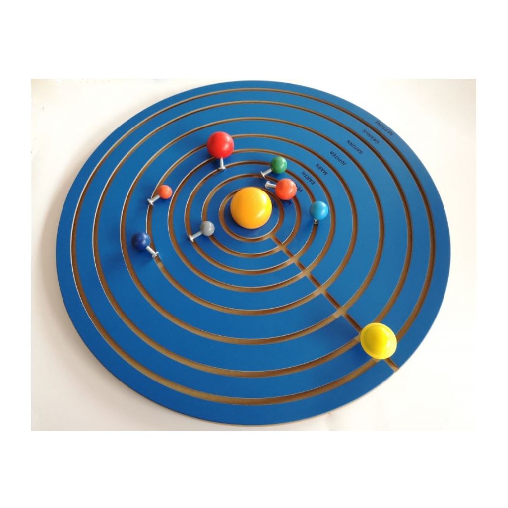 Dřevěná kruhová deska pro názorné předvedení sluneční soustavy a postavení planet. Materiál dřevo. Průměr desky cca 55cm.