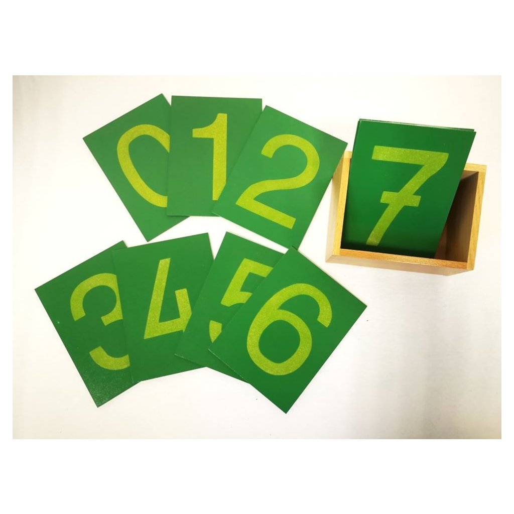 Smirkové číslice s krabičkou v provedené číslic dle EN způsobu psaní čísel 0-9. Uloženo v dřevěné krabičce Rozměr destiček 12x16cm.