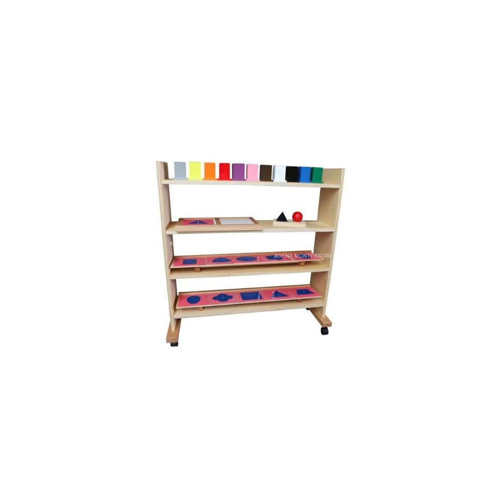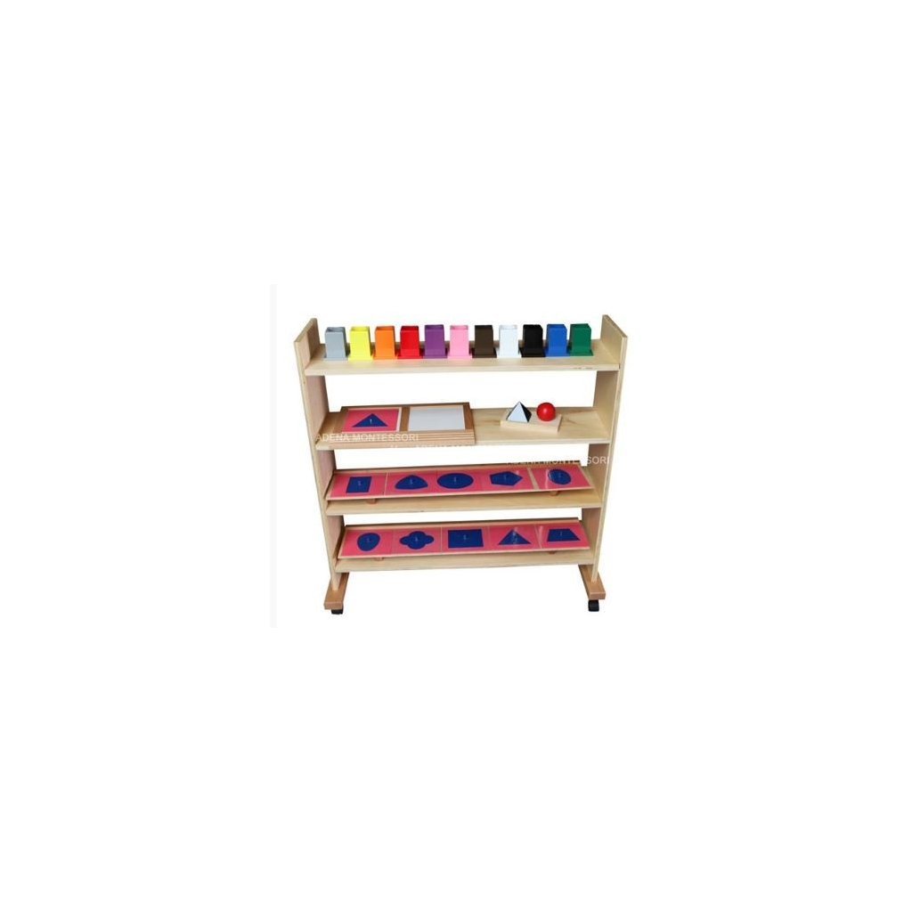 Stojan pomáhá udržovat řád a přehled v Montessori prostředí, dítě se učí samostatně volit a vracet pomůcku, upevňuje si vztah k pořádku a zodpovědnosti. Nepřímo rozvíjí i zrakové vnímání a prostorovou orientaci.