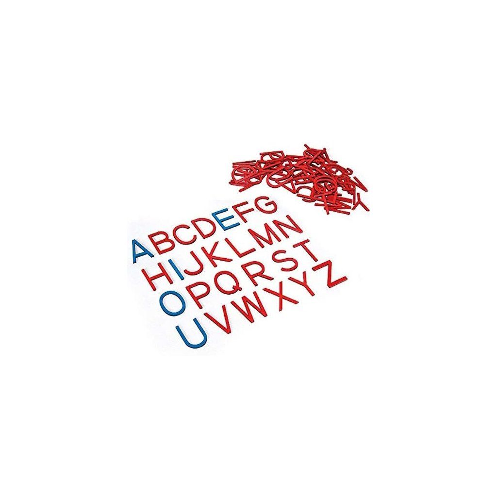 Sada obsahuje 27 základních písmen dle anglické abecedy (tedy neobsahuje specifický český znak ch). Sada obsahuje 5ks písmen souhlásek v barvě čerené a 5ks samohlásek v barvě modré. Výška písmen 5,5cm Vyrobeno z bukové překližky, lakováno z horní strany písmen. Sada neobsahuje box na uložení objednávejte prosím samostatně box L030.Doplňkové parametry