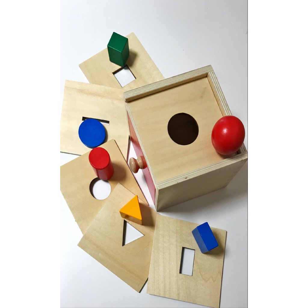 Tato komplexní Montessori pomůcka je určena pro děti od 10 měsíců, které začínají objevovat zákonitosti světa – zejména pochopení toho, že věci existují i tehdy, když je nevidí (tzv. trvalost objektu).