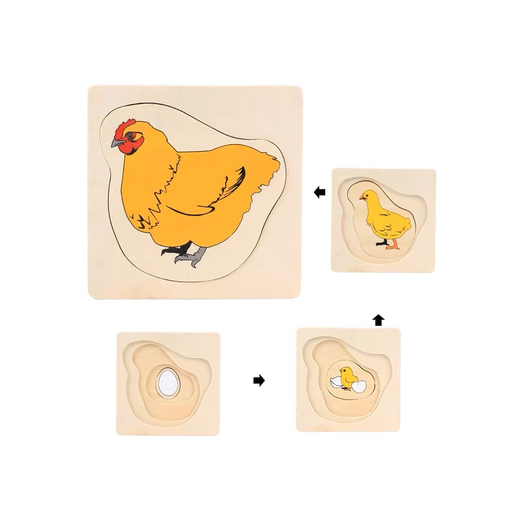 ADENA MONTESSORI Vrstvené puzzle životní cyklus slepice