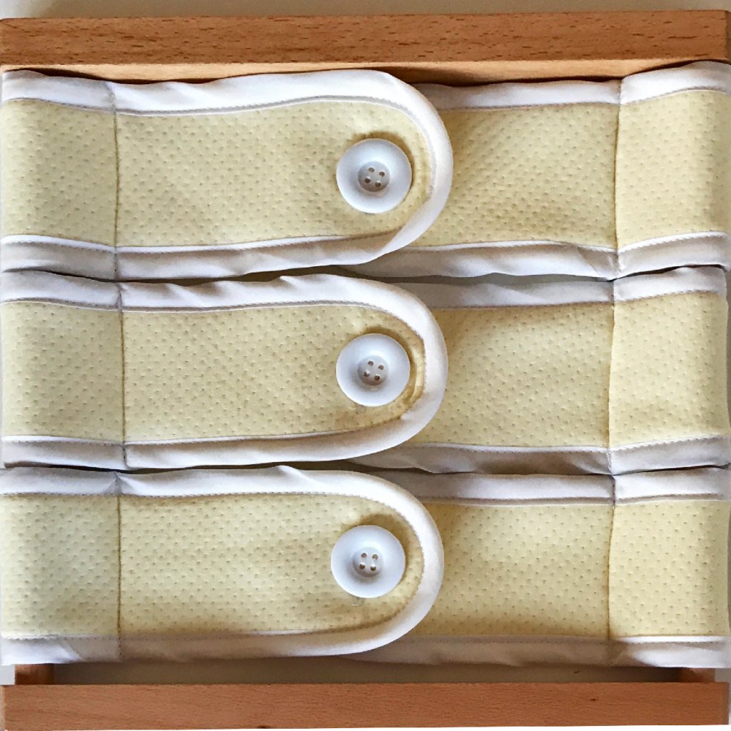 Montessori zapínací rám s velkými knoflíky je ideální pomůckou pro malé děti, které se teprve učí základní oblékací dovednosti. Dítě si díky opakovanému zapínání a rozepínání knoflíků osvojuje důležitou činnost, se kterou se běžně setkává při oblékání košile, svetru nebo kabátku.