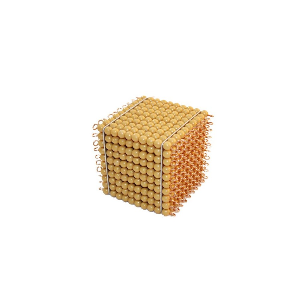 Zlatá tisícovková krychle je jednou ze základních pomůcek Montessori matematiky. Dítě pomocí ní vnímá číslo 1000 jako konkrétní, uchopitelný celek. Krychle se skládá z 1000 perliček, které jsou uspořádány do dokonalého kvádru – 10 × 10 × 10.