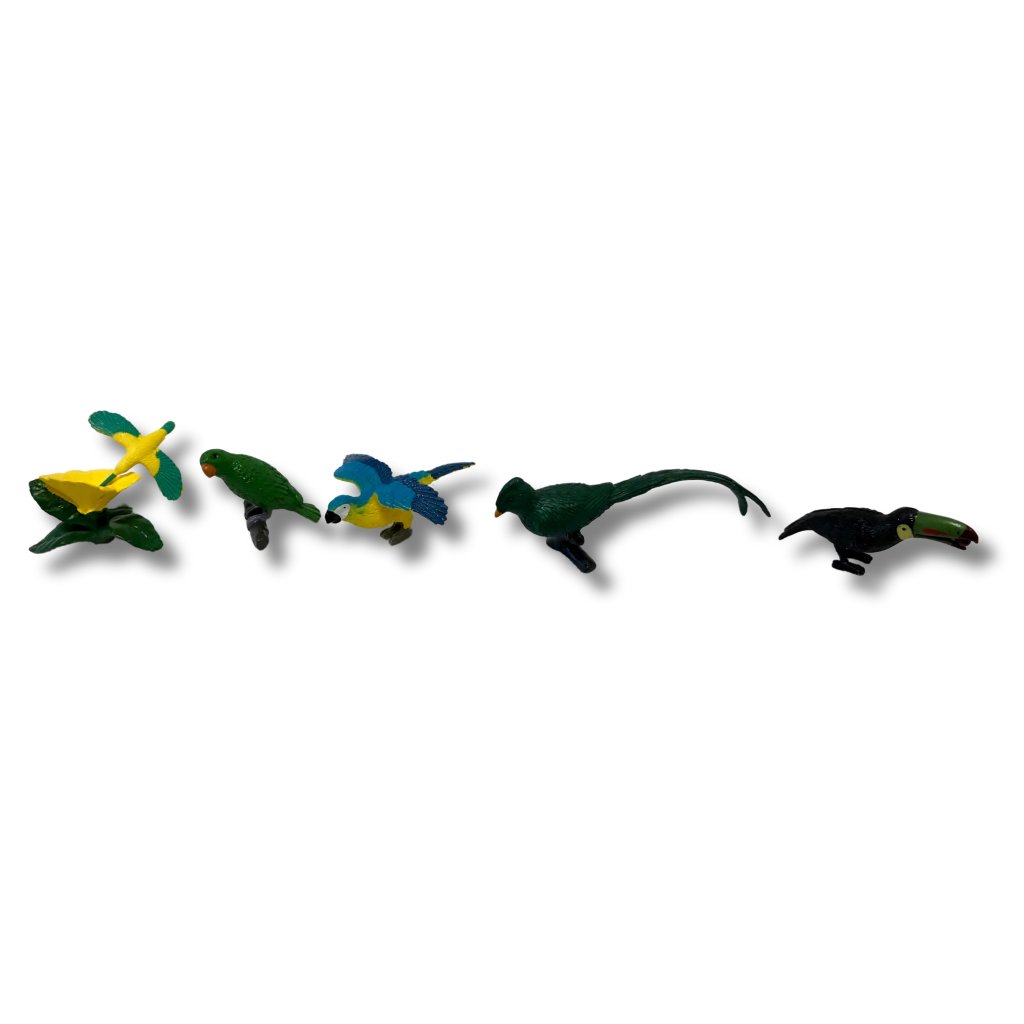 Tato sada obsahuje 5 realisticky zpracovaných figurek exotických ptáků, ideální pro všechny děti, které se chtějí seznámit s těmito fascinujícími zvířaty. V krabičce najdete: Andulku, Papouška ARA, Tukana Krátkozobého, Papouška Zeleného a Kolibříka s Ibiškem. Jsou skvělým nástrojem pro rozvoj dětské fantazie a výuku o exotickém ptactvu a jeho přirozeném prostředí.