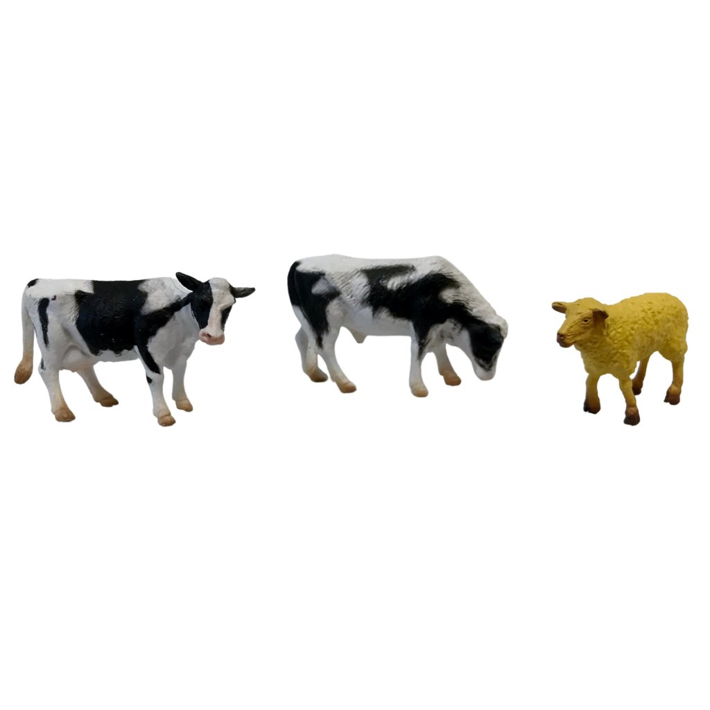 Krabička obsahuje 6 ručně malovaných figurek zpracovaných do nejmenších detailů: Stojící kráva, pasoucí se kráva, ovce, husa, kachna, pes.