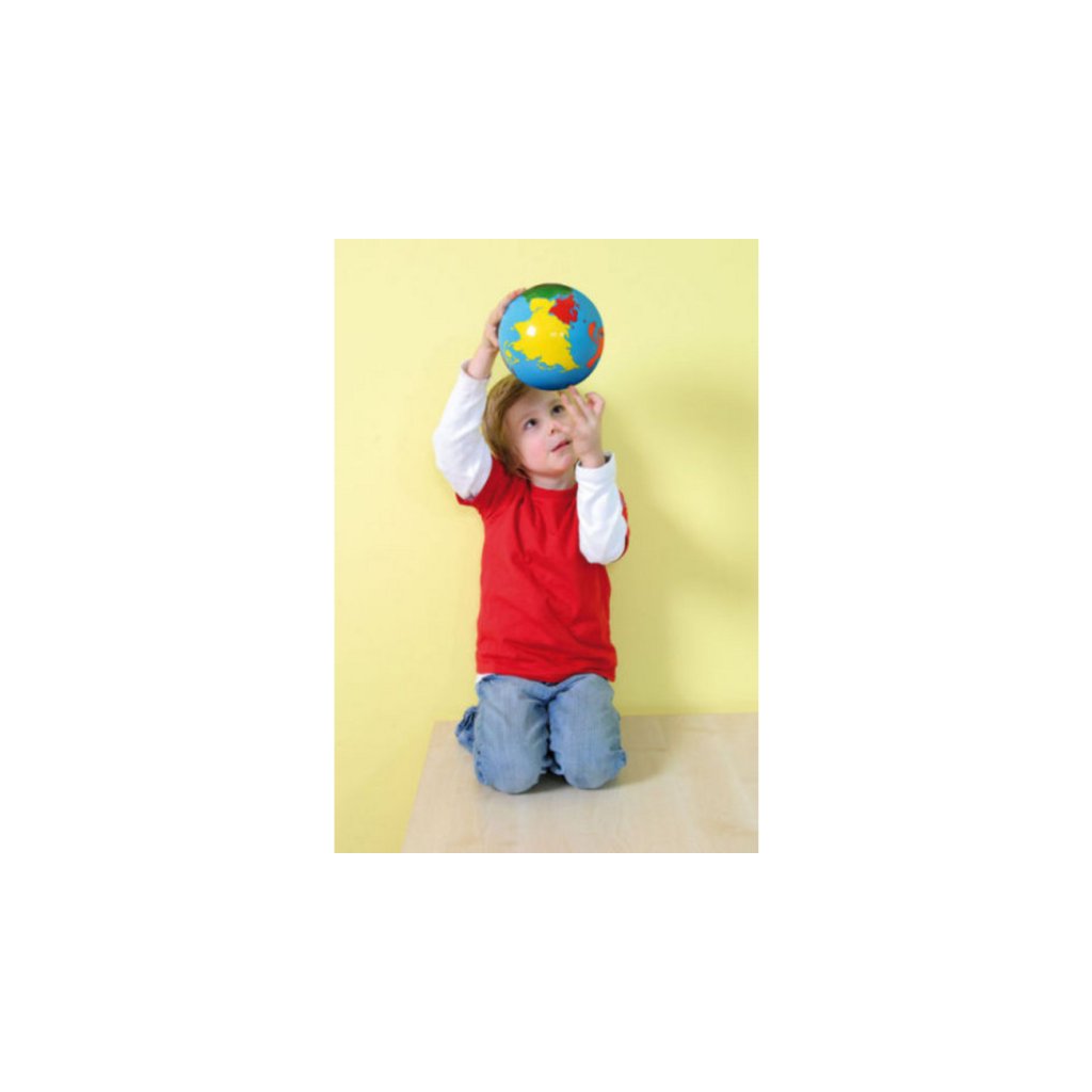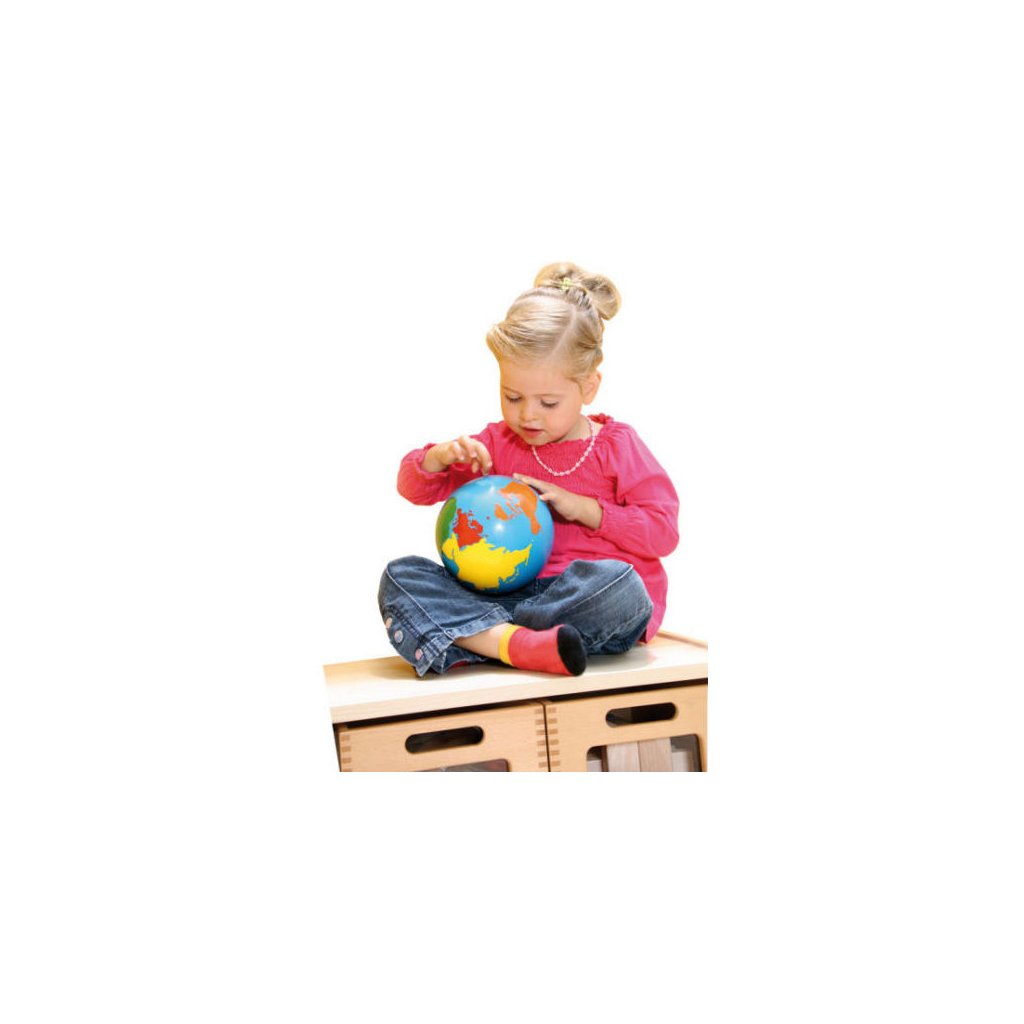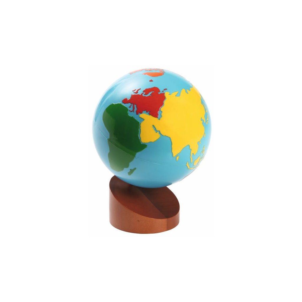 Pomůcka podporuje multisenzorické poznávání světa kombinací zraku a hmatu, rozvíjí rozlišování kontinentů podle barvy a tvaru a napomáhá pochopení sklonu zemské osy a jejího významu. Slouží jako příprava na práci s Montessori puzzle mapami a podporuje samostatné objevování i prostorovou orientaci.