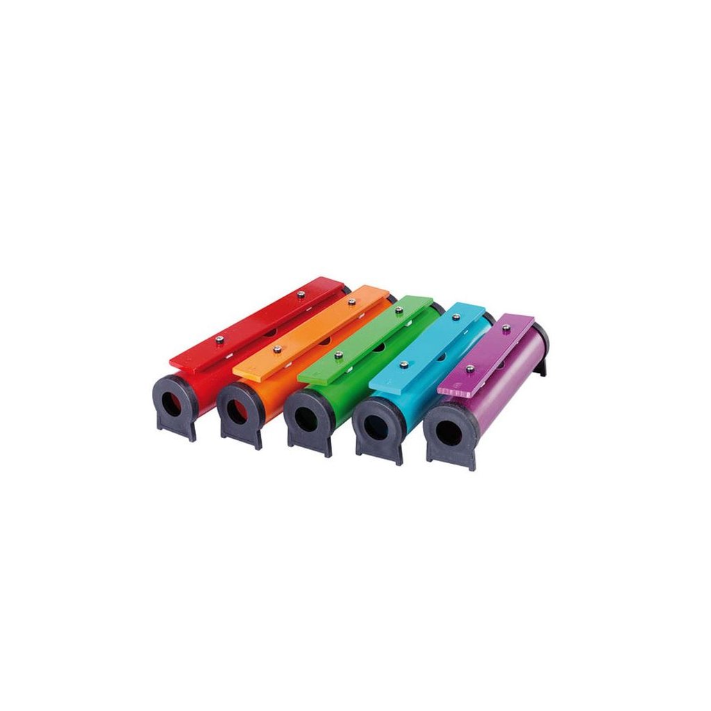 - 5 barevných kulatých ozvučných trubic s paličkami.