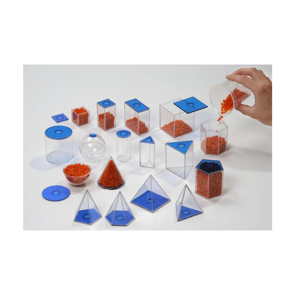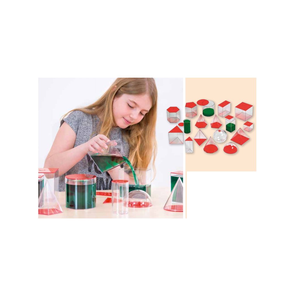 - Ideální pomůcka pro měření, porovnávání a další zkoumání objemů mezi různými geometrickými tělesy jako jsou kostky, hranol, jehlan a další.