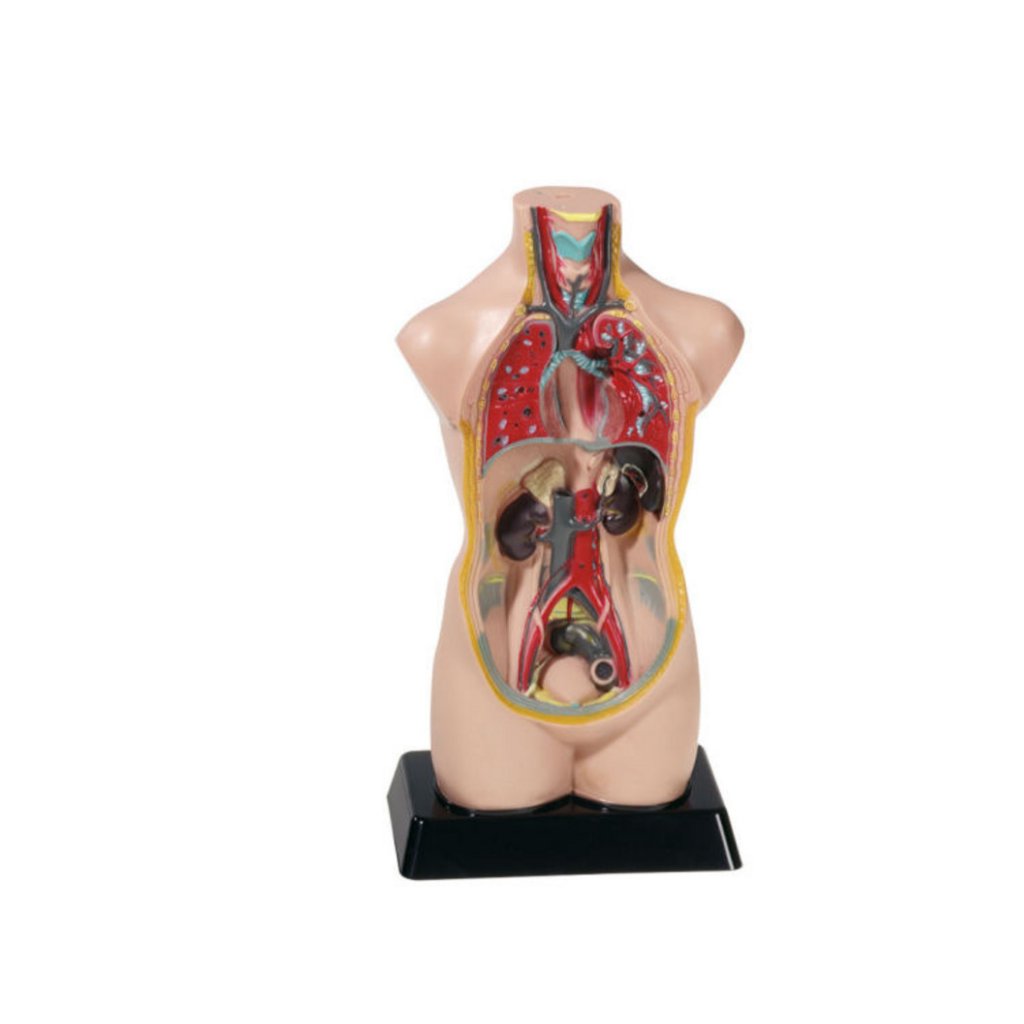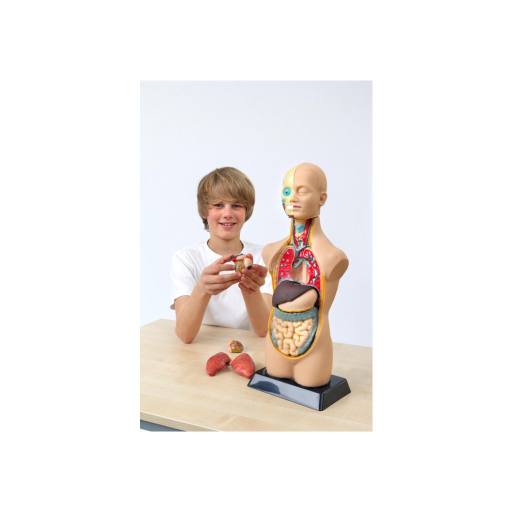 Jak vypadáme zevnitř? Děti se také zajímají o to, jak člověk vypadá zevnitř, jak vše funguje a kam co patří. S přibližně 48 cm dlouhým trupem je možné nahlédnout do našeho nitra a probudit vědecký anatomický zájem. Lebku lze rozdělit na 2 poloviny. Jednotlivé orgány anatomického modelu jsou odnímatelné. Tímto způsobem lze prohlížet i skryté orgány. Trup je ideálním demonstračním materiálem pro výuku biologie. Dotykem, instalací a odstraněním orgánů se vaši studenti živě seznámí se strukturou lidského těla. Rozsah dodávky Trup lze rozložit celkem na 11 částí (trup, lebka 2 díly a dalších 8 odnímatelných částí) Výška : 59 cm Šířka :26,5 cm Hloubka : 13 cm Hmotnost : 1,28 kgDoplňkové parametry