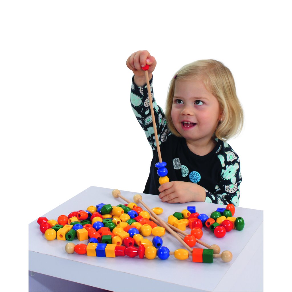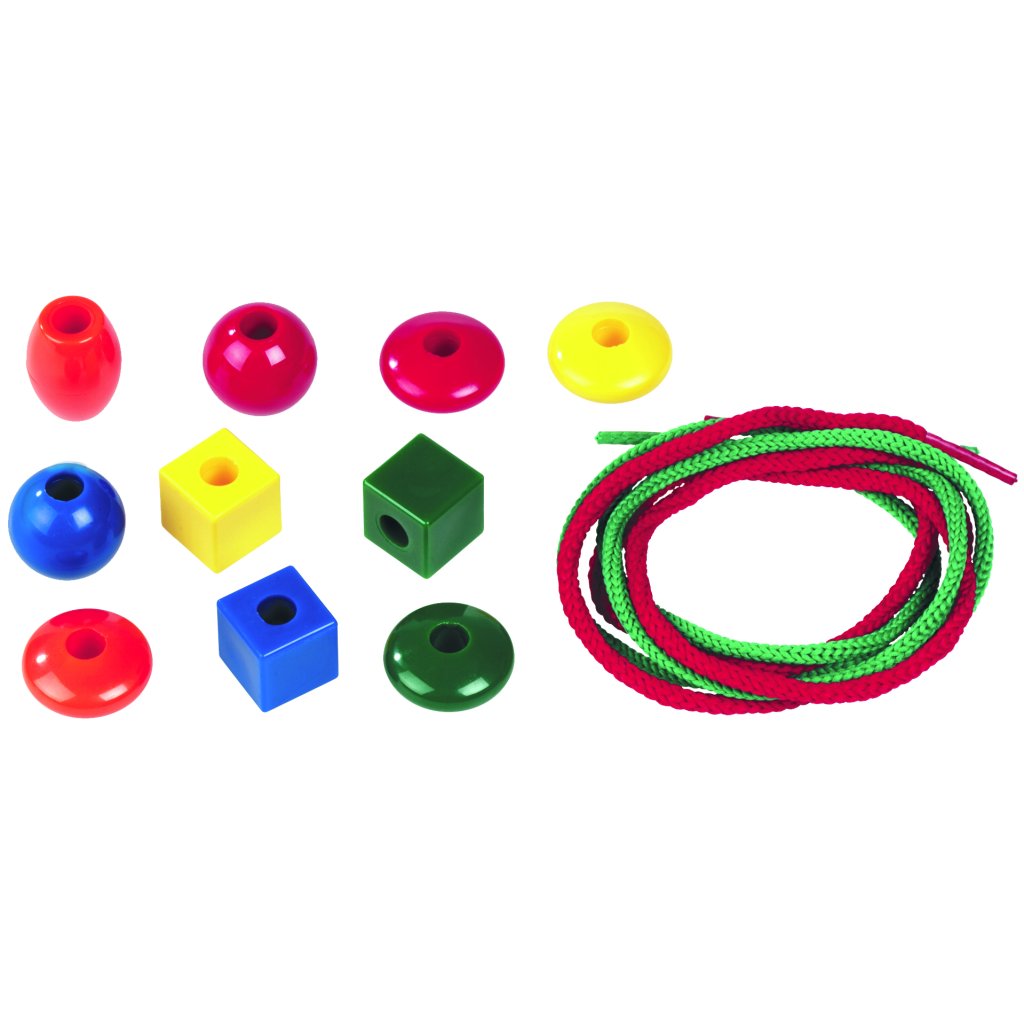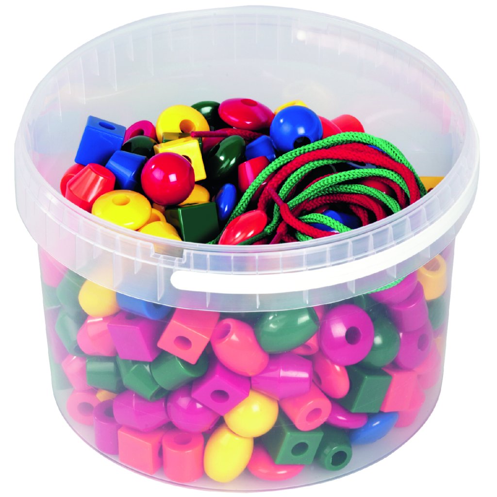 - Obsahuje 250 ks - 6 různých tvarů a 5 různých barev, včetně 8 tkaniček na navlékání.
