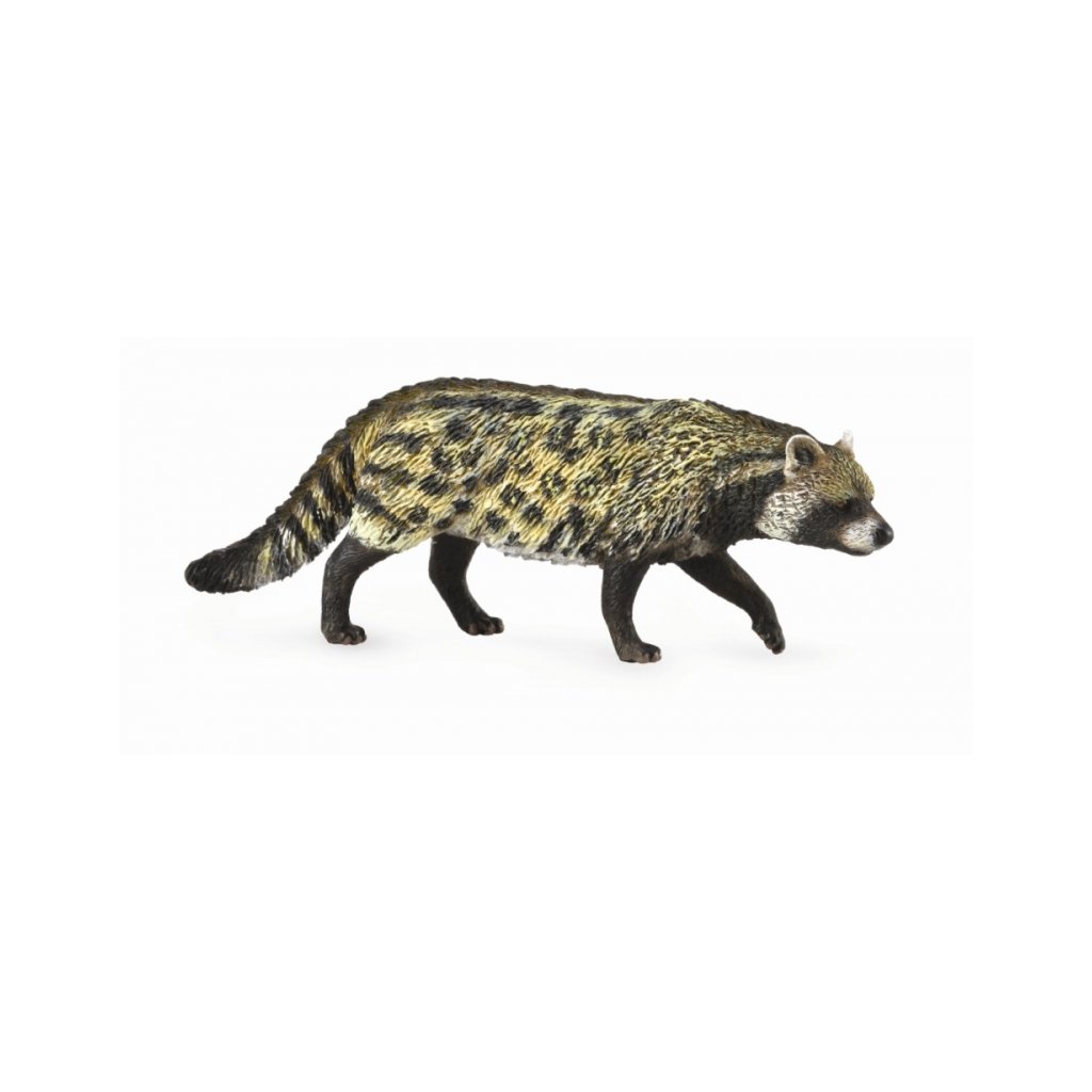 Africká cibetka je noční šelma s výraznými znaky a podsaditým tělem. Figurka od značky Collecta dokonale vystihuje její typický vzhled – světlou srst s tmavými pruhy a ocasem připomínajícím lemura. Tato figurka nabízí dětem a pedagogům možnost přiblížit si zvíře, které je běžně ukryté v houštinách africké přírody.