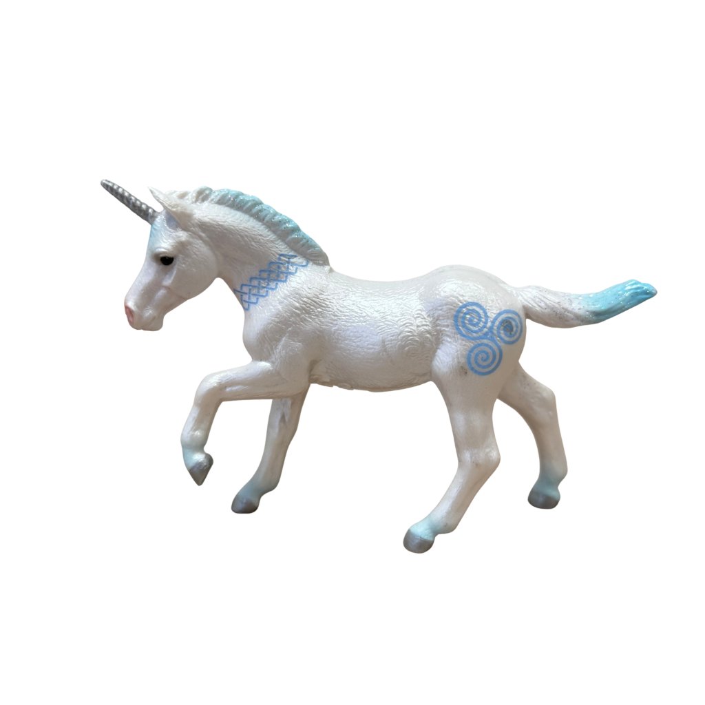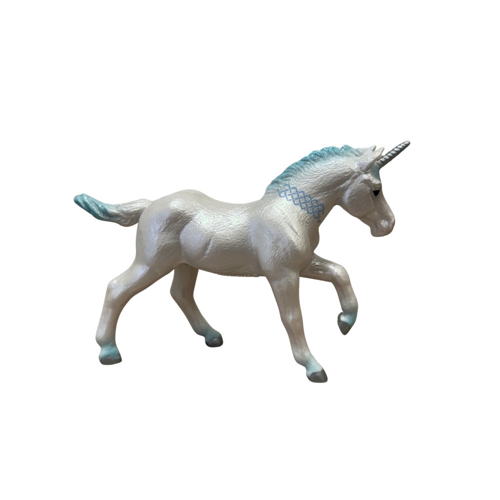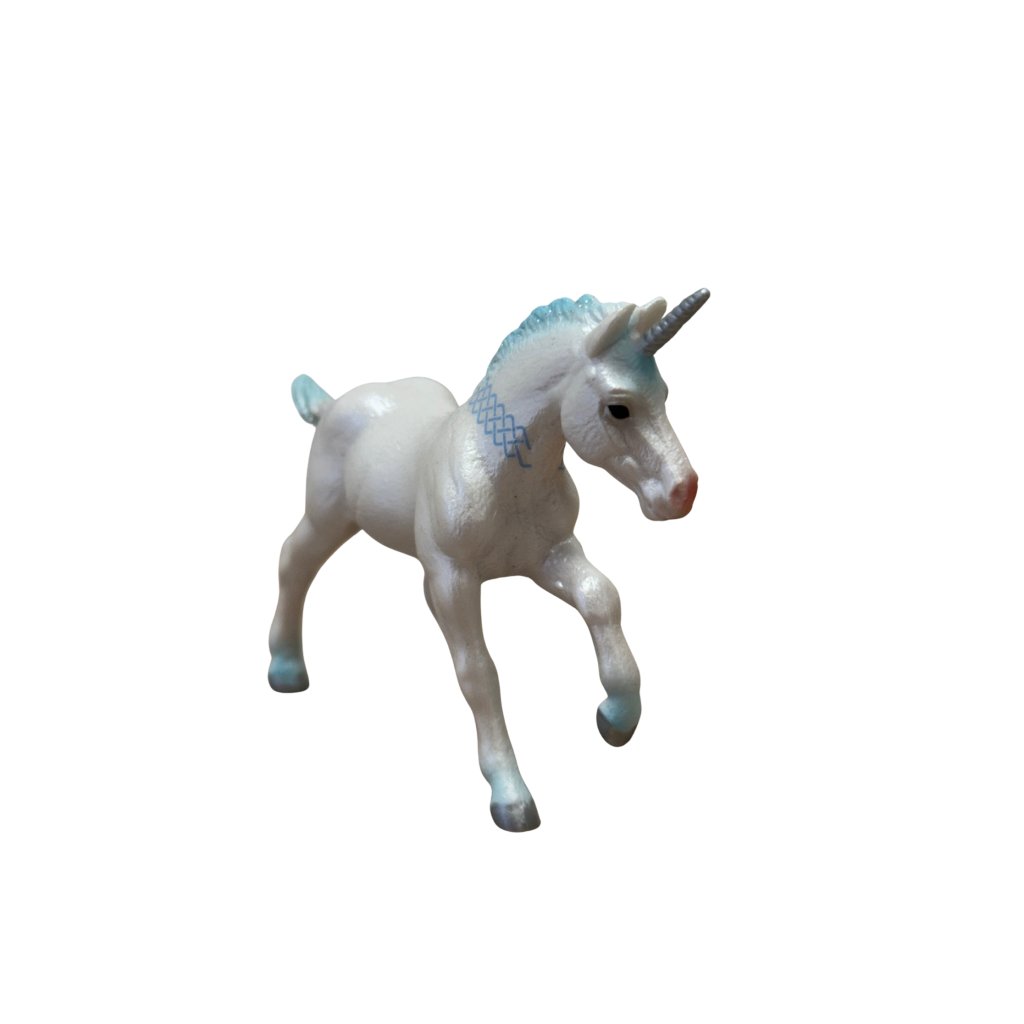 Z říše fantazie přichází kouzelné modré hříbě jednorožce, které okouzlí každého malého snílka. Jemné detaily, pastelové barvy a kouzelný výraz dělají z této figurky ideální doplněk pro pohádkovou hru nebo sběratelskou vitrínu.