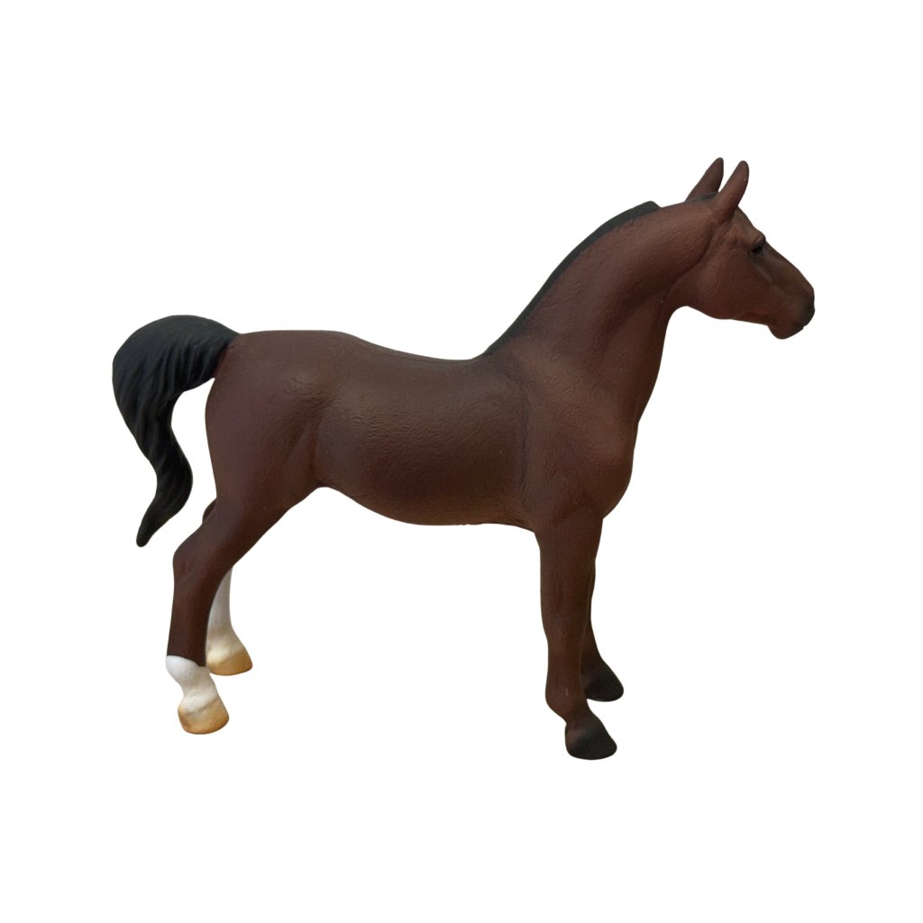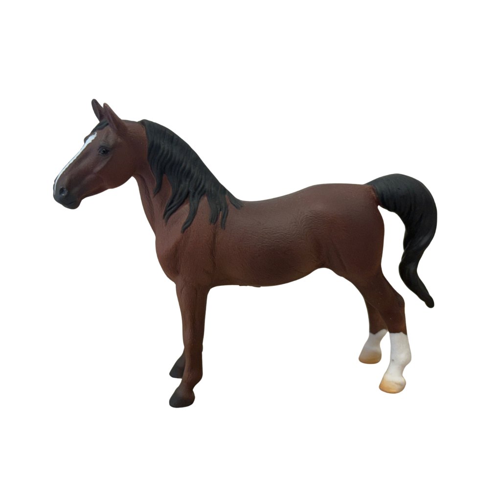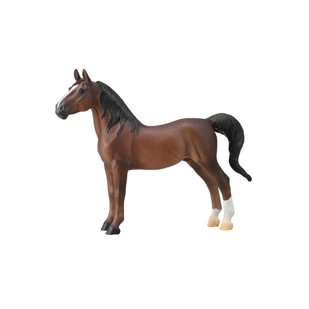 Tato majestátní figurka představuje amerického jezdeckého hřebce, známého pro svou eleganci, siluetu a klidný krok. Díky realistickému ztvárnění je ideální jak pro dětskou hru, tak i jako výuková pomůcka nebo dekorace do tematického koutku.