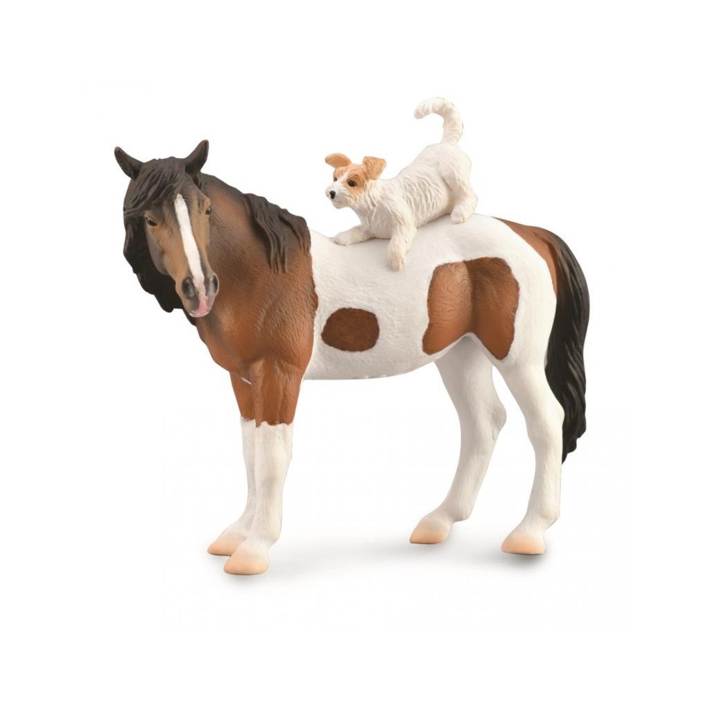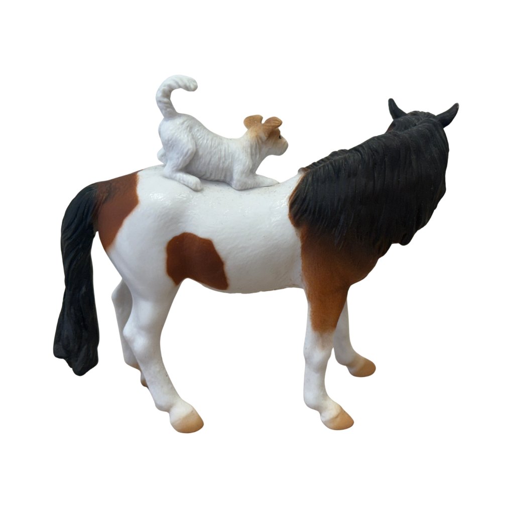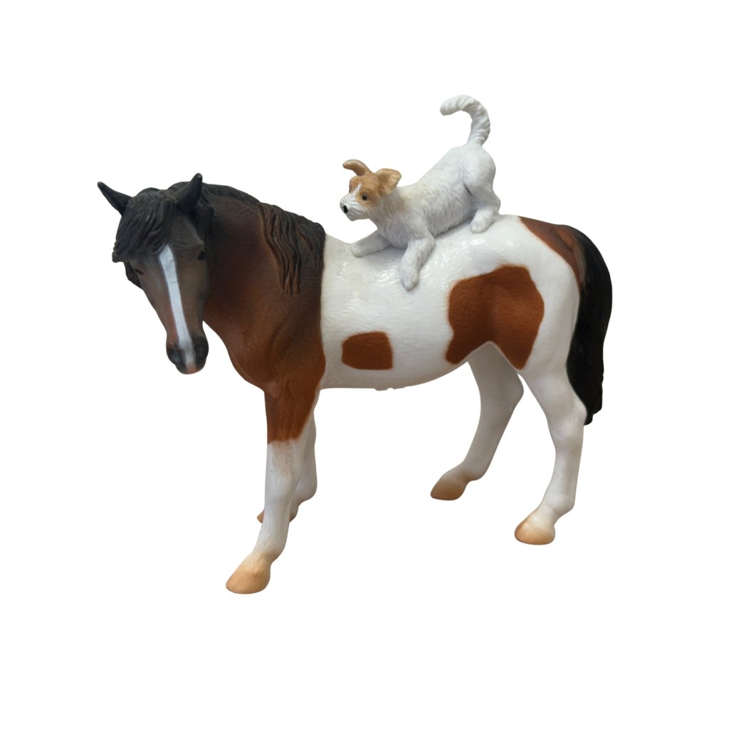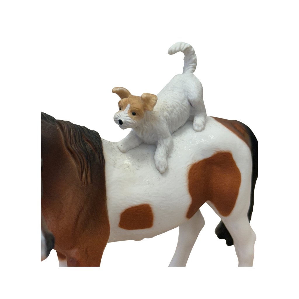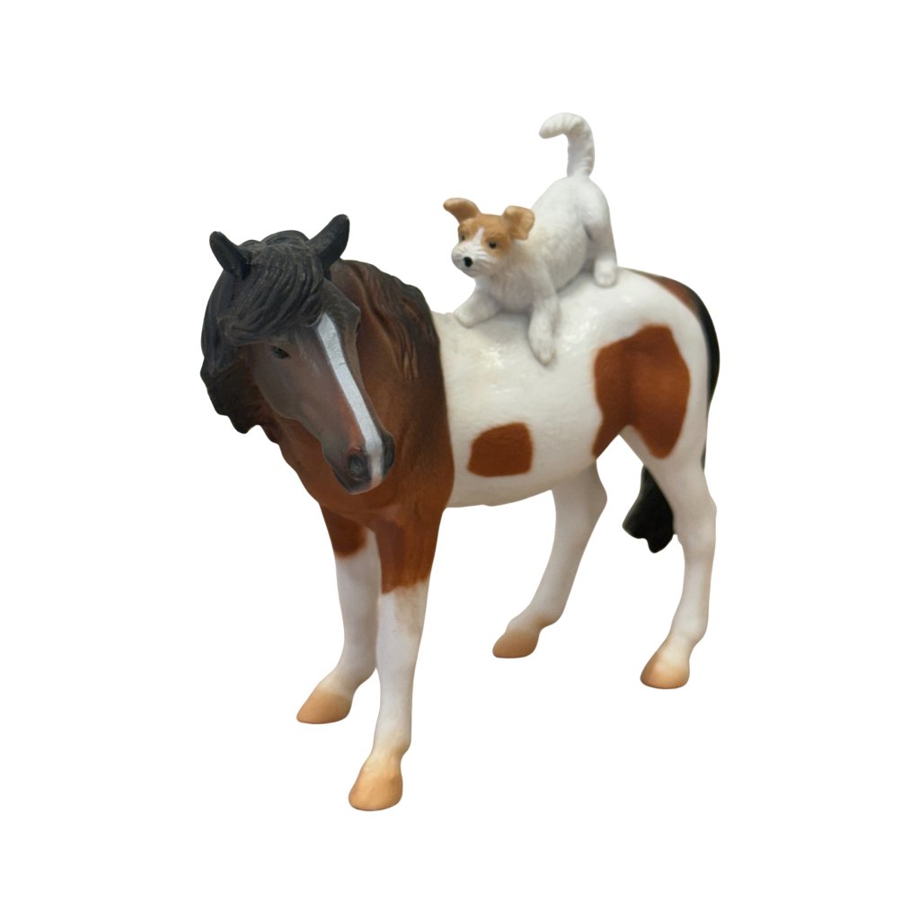 Dvojice klisny a teriéra potěší děti i dospělé svou jemností a emocí, kterou přináší. Ideální pro hru, sbírku i výuku o domácích zvířatech a vztazích mezi nimi.