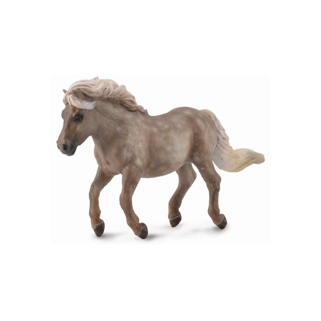 Tato realisticky ztvárněná figurka představuje shetlandského ponyho v atraktivním stříbrném zbarvení. Díky menšímu vzrůstu, ale robustní stavbě těla je shetland typickým zástupcem severských koní – odolný, silný a přátelský.
