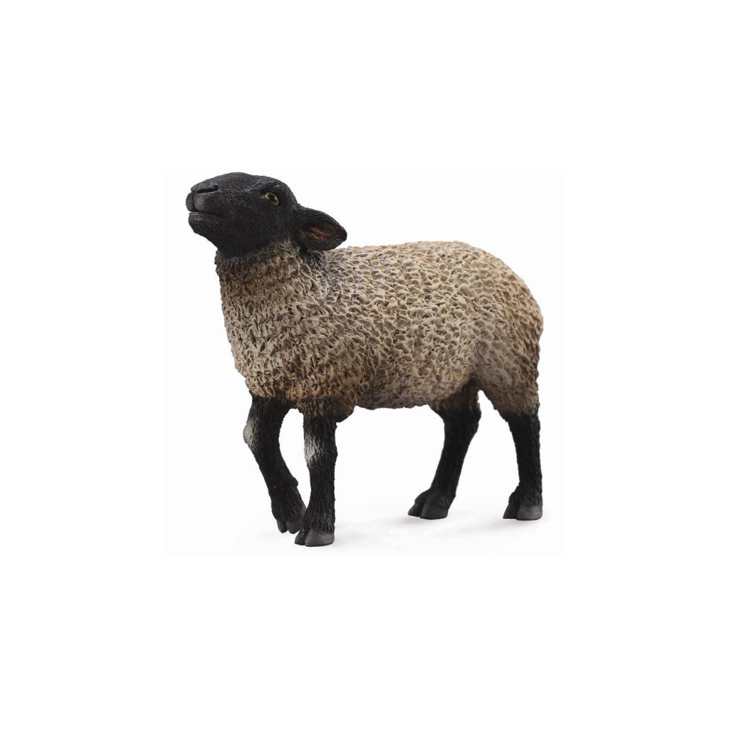 Suffolská ovce je jedním z nejznámějších plemen chovaných pro maso i vlnu. Tato figurka od značky Collecta věrně zachycuje její charakteristický vzhled – bílé tělo s černou hlavou a nohama. Vhodná do herních scén s domácími zvířaty i pro výukové účely.
