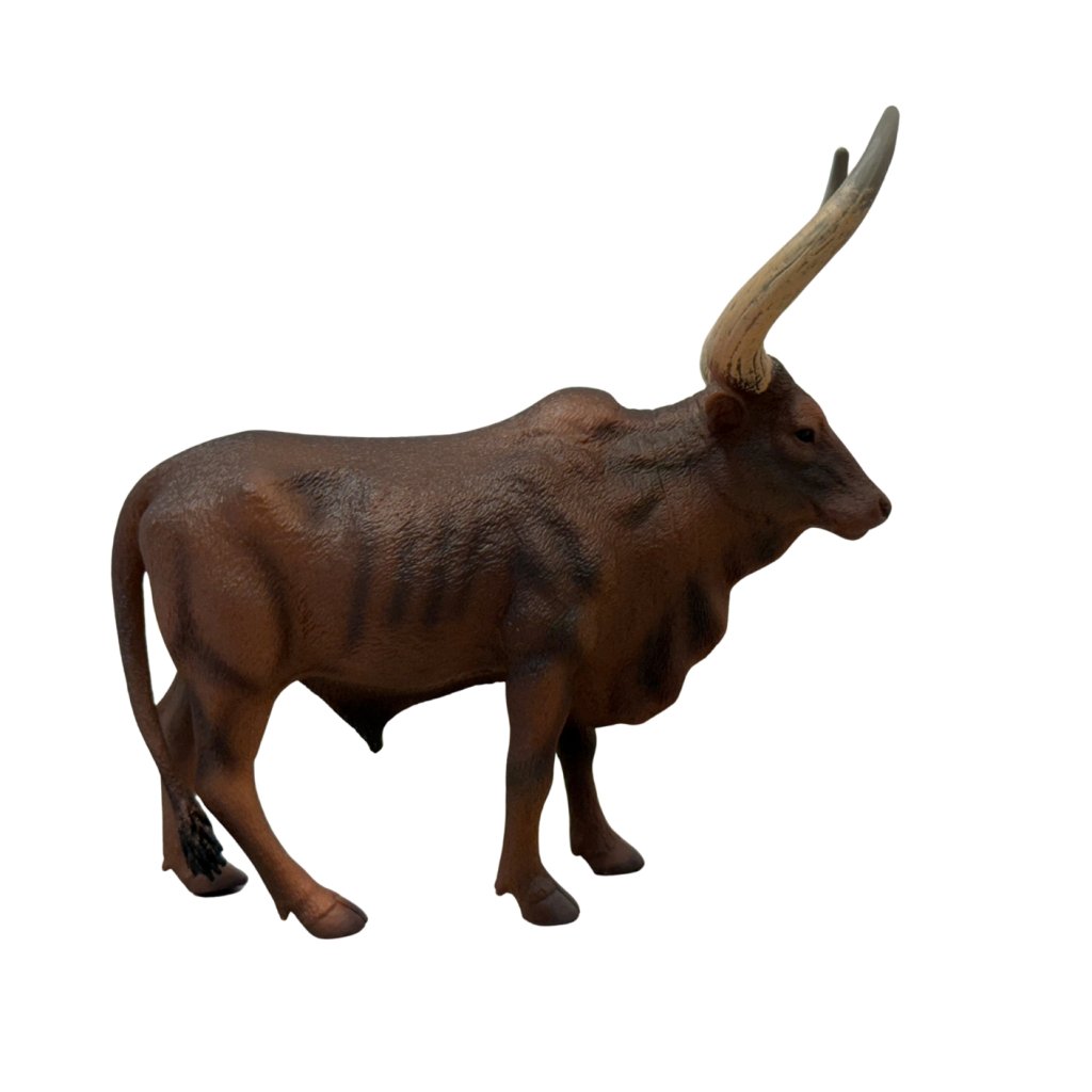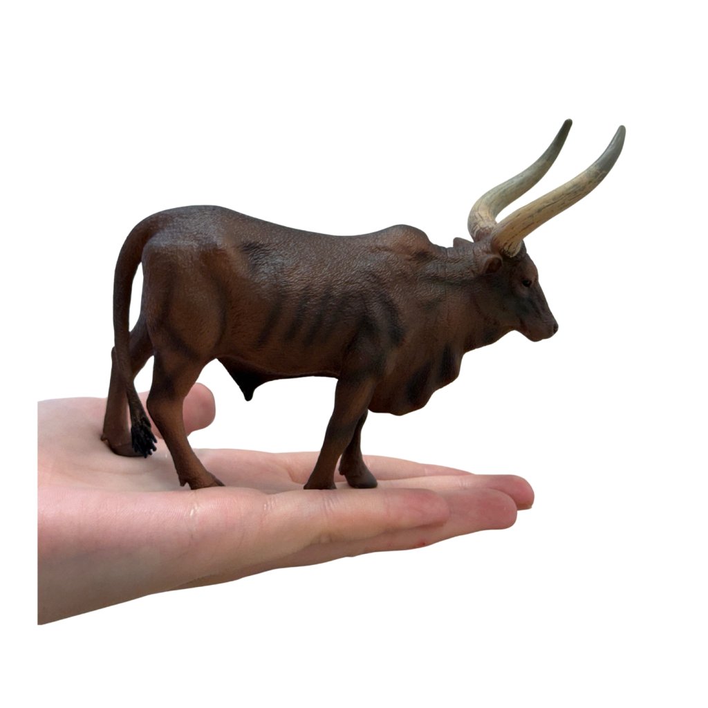 Watusi býk patří mezi nejvýraznější zástupce afrického dobytka – a tato figurka to zachycuje dokonale. Jeho mohutné rohy a elegantní postoj z něj činí nezaměnitelnou součást každé kolekce. Vhodné pro děti, pedagogy i sběratele.
