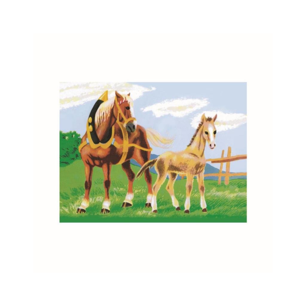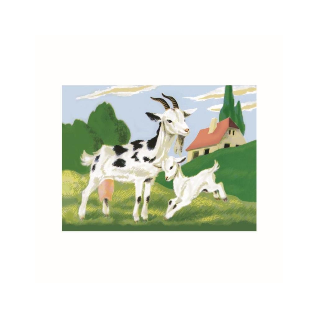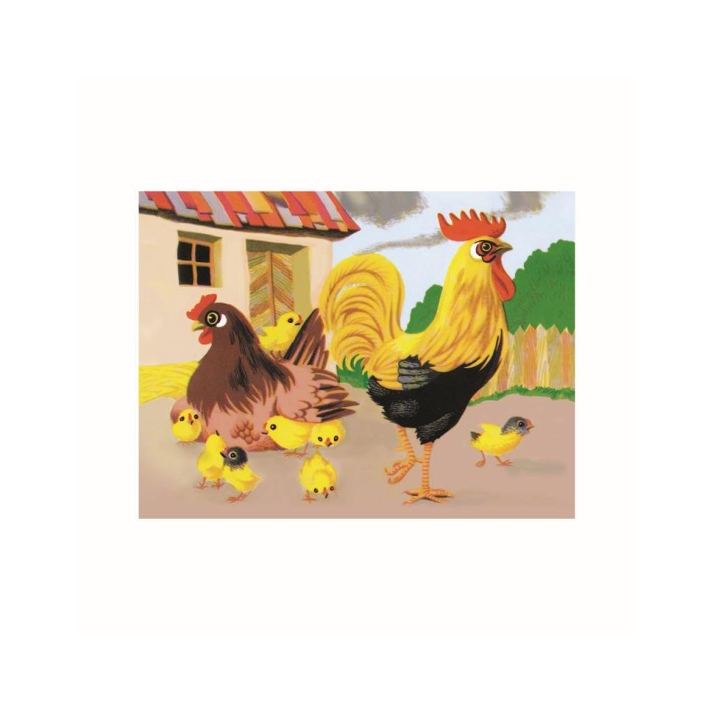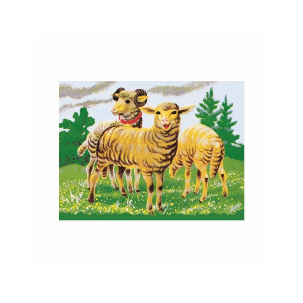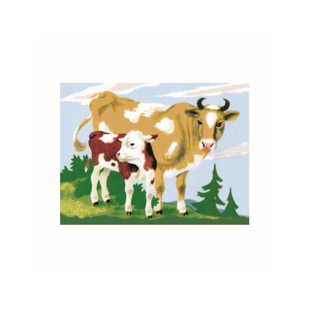 - 12ks dřevěných kostek se šesti obrázky zvířat z farmy.