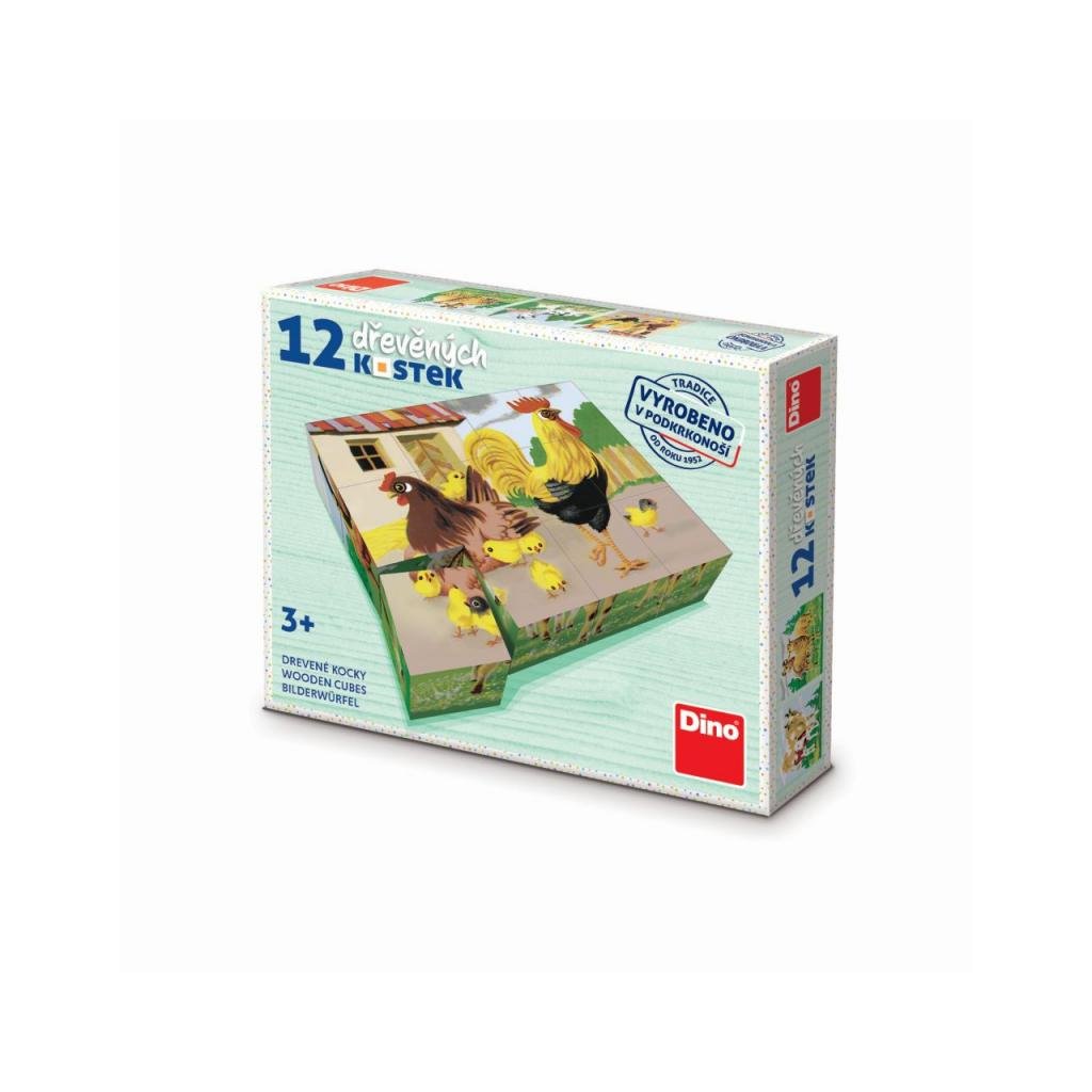 DINO Dřevěné kostky domácí zvířata 12ks