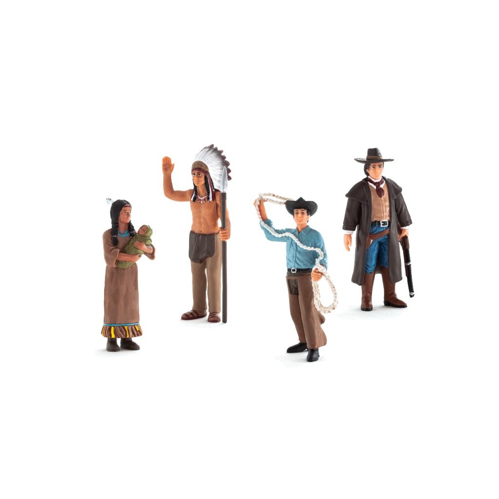 Tato tematická sada přináší čtyři výrazné postavy inspirované světem amerického Západu. Děti se díky ní seznámí s typickými postavami tehdejší doby – kovbojem s lasem, hrdým indiánským náčelníkem, indiánkou s dítětem a šerifem ve službě. Každá figurka je ručně malovaná a nabízí bohaté detaily pro hru, výuku i sbírku.