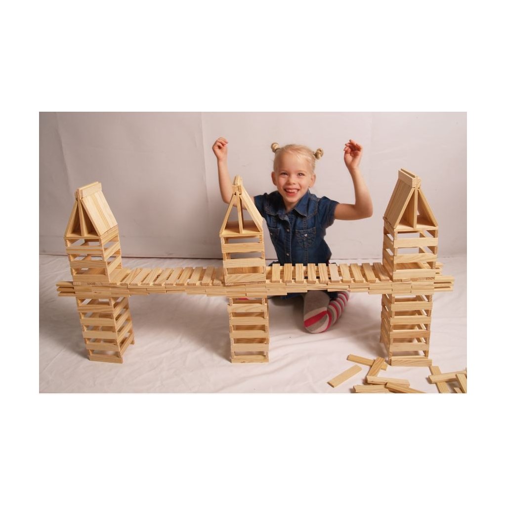 Dřevěná stavebnice - sada City Blocks obsahující 150ks hranolů Kreativní hračka pro děti i dospělé. Dřevěná stavebnice má jediný prvek - dřevěný bukový hranol s výjimečně přesnými rozměry. Rozměr hranolu 115 x 23 x 8 mm. Díky přesnému zpracování a rovnosti povrchu lze s tímto stavebním prvkem postavit neobyčejně krásné a působivé stavby. Stavby drží pohromadě pouze pomocí gravitačních sil a tření, žádné lepení nebo spojovací prvky! City Blocks dřívka mění životy dětí a dospělých po celém světě. Děti objevují radost z vytváření originálních uměleckých děl nebo chytře navržených staveb. Kreativita přináší radost do života lidí, což je důvod, proč je umění tak důležité. Budoucí architekti a inženýři objevují své schopnosti a dovednosti pro stavění již v raném věku. Postavte si věž, hrad, dům nebo loď. Úžasná je ale také možnost vše nakonec zbořit, to naše děti milují nejvíc. Pro děti od 3let do 99 let. Čím více kusů dřívek, tím více zábavy. Baleno papírové krabici. Obsahuje návod/inspirace pro různé stavby, které se dají postavit z určitého počtu hranolů. Skvělá zábava pro děti i dospělé. SKVĚLÉ TAKÉ NA PLOTY a OHRADY PRO ZVÍŘATA SAFARI Ltd. Podívejte se jak staví profesionálové z City Blocks ligy: https://www.youtube.com/watch?v=6jv4evdglMY
