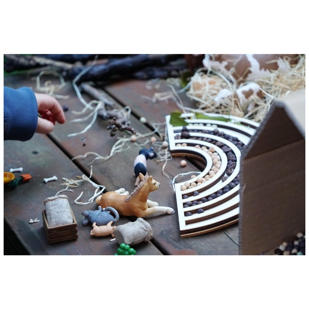 Velikost: 27 x 13cm Tác je vyřezán laserem, proto má z boků opalky. Povrch je obroušen do hladka, a proto se nemusíte bát třísek. Dřevo je přírodní, nelakované. Vyrobeno v naší domácí dílně pro kouzelnou hru Vašich dětí ❤️ Bezpečnostní upozornění: Jedná se o didaktickou pomůcku. Nevhodné pro děti do 3 let. Používat pod dohledem dospělé osoby. Při poškození výrobek dále nepoužívejte. Pro výrobu používáme certifikovanou dřevěnou překližku a lepidlo s atestem na dětské hračky a pro styk s potravinami. Bezpečnost a udržitelnost našich pomůcek je pro nás totiž na prvním místě.