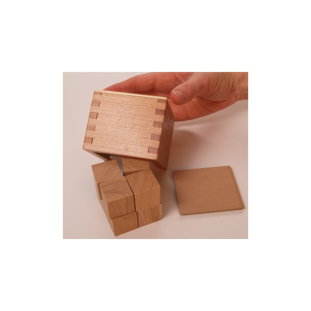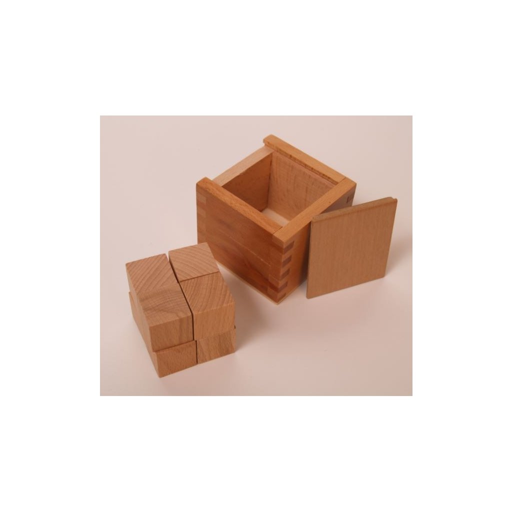 Účel Daru: Pro základní pochopení, že celek je tvořen menšími stavebními prvky Tento dar rozvíjí myšlenku, že celek se skládá z jednotlivých částí a v případě chybějící části celek nevznikne. Pomocí tohoto Daru jsme schopni předvést dělení na poloviny, čtvrtiny Můžeme využívat i pro základy matematiky, počítání kusů, ploch a hran na každém jednotlivém kuse. Určeno pro děti od 2 let Obsah balení: Dřevěná krychle rozdělená jedním podélným a dvěma příčnými řezy na 8 menších krychliček (25x25x25mm) z kvalitního bukového nelakovaného dřeva. Vše je uloženo do krabičky z bukového dřeva.
