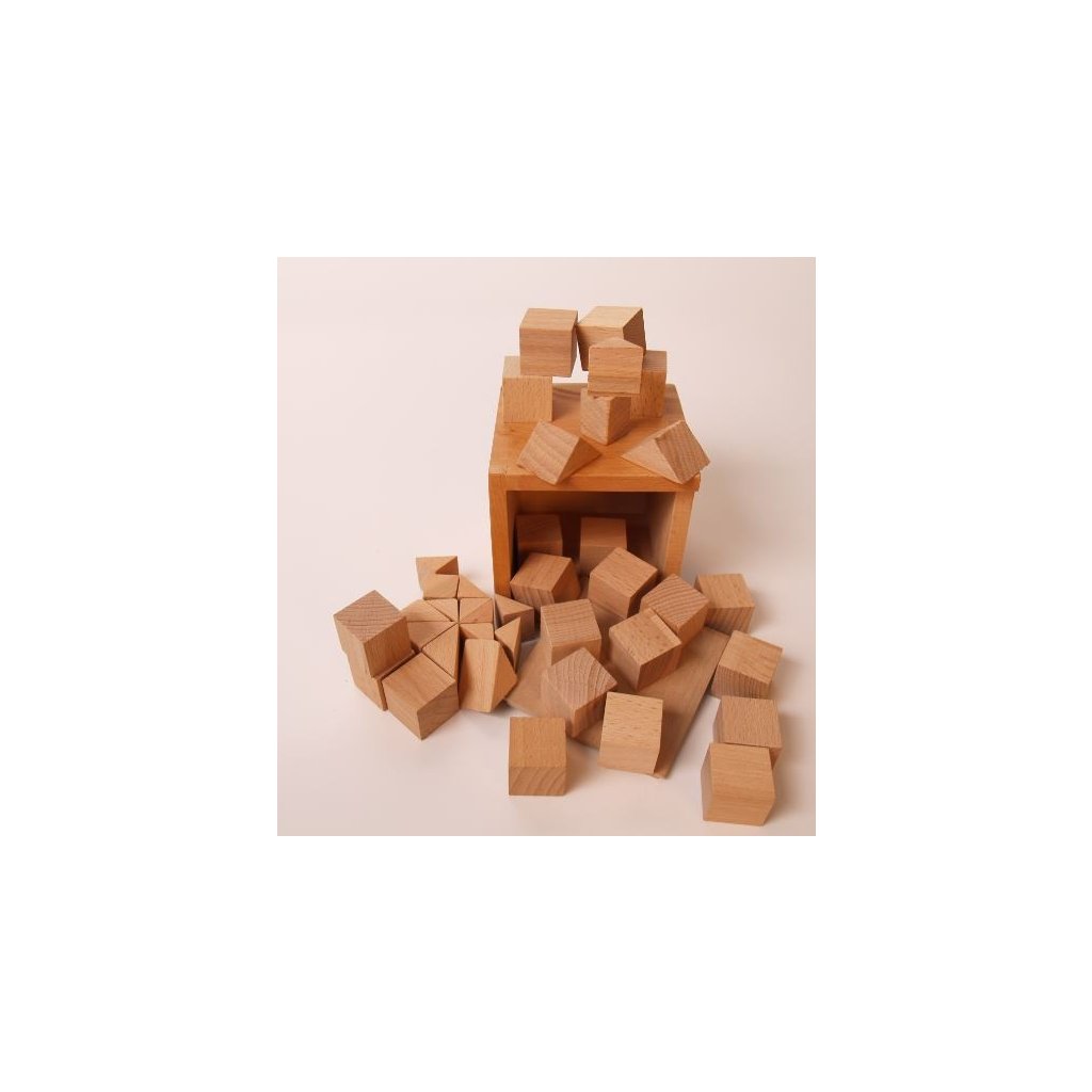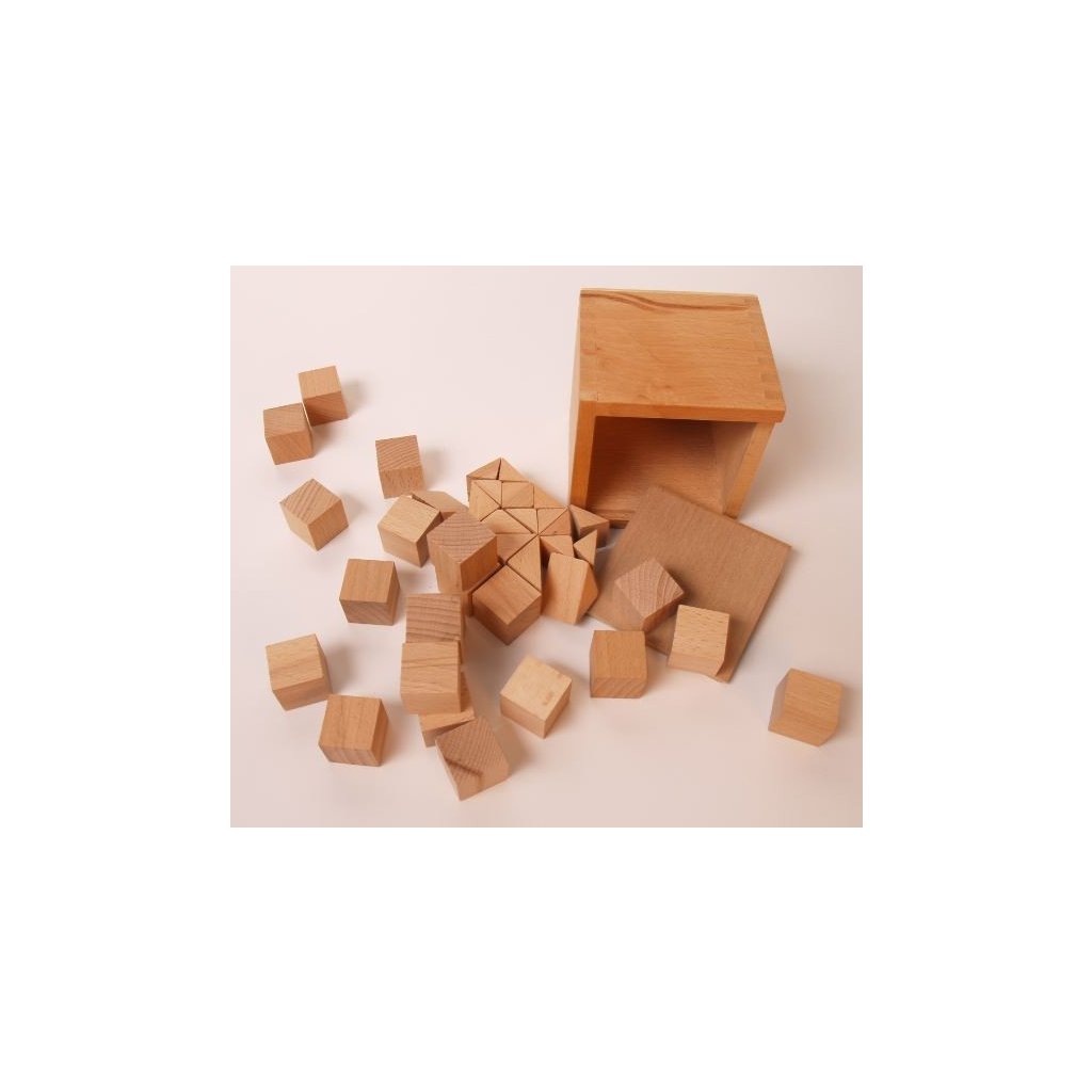 Účel Daru: Navazuje na Dar 3 a 4 s dělením celku na menší části Můžeme už využívat pro počítání jak kusů, tak i ploch a hran na každém jednotlivém kuse Půl kostky a čtvrt kostky zapojují do představivosti dítěte trojúhelníkový tvar Určeno pro děti od 3 let Obsah balení: Větší dřevěná krychle rozdělená na následující tvary – 21 krychliček (25x25x25mm), 3 krychličky dále rozdělené jedním řezem na polovinu tj. 6 ks trojbokých hranolů a 3 krychličky dále rozdělené dvěma řezy na čtvrtinu tj. 12 ks menších trojbokých hranolů. Vše je uloženo do krabičky z bukového dřeva.