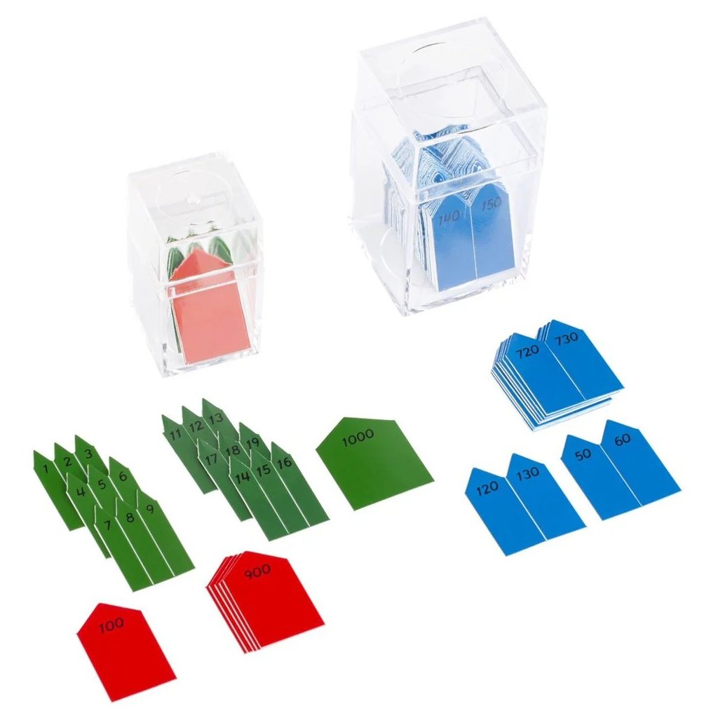 Barevné rozlišení odpovídá hierarchii desítkové soustavy a podporuje přehlednou práci s materiálem. Součástí balení jsou dvě průhledné plastové krabičky pro bezpečné a organizované uložení.
