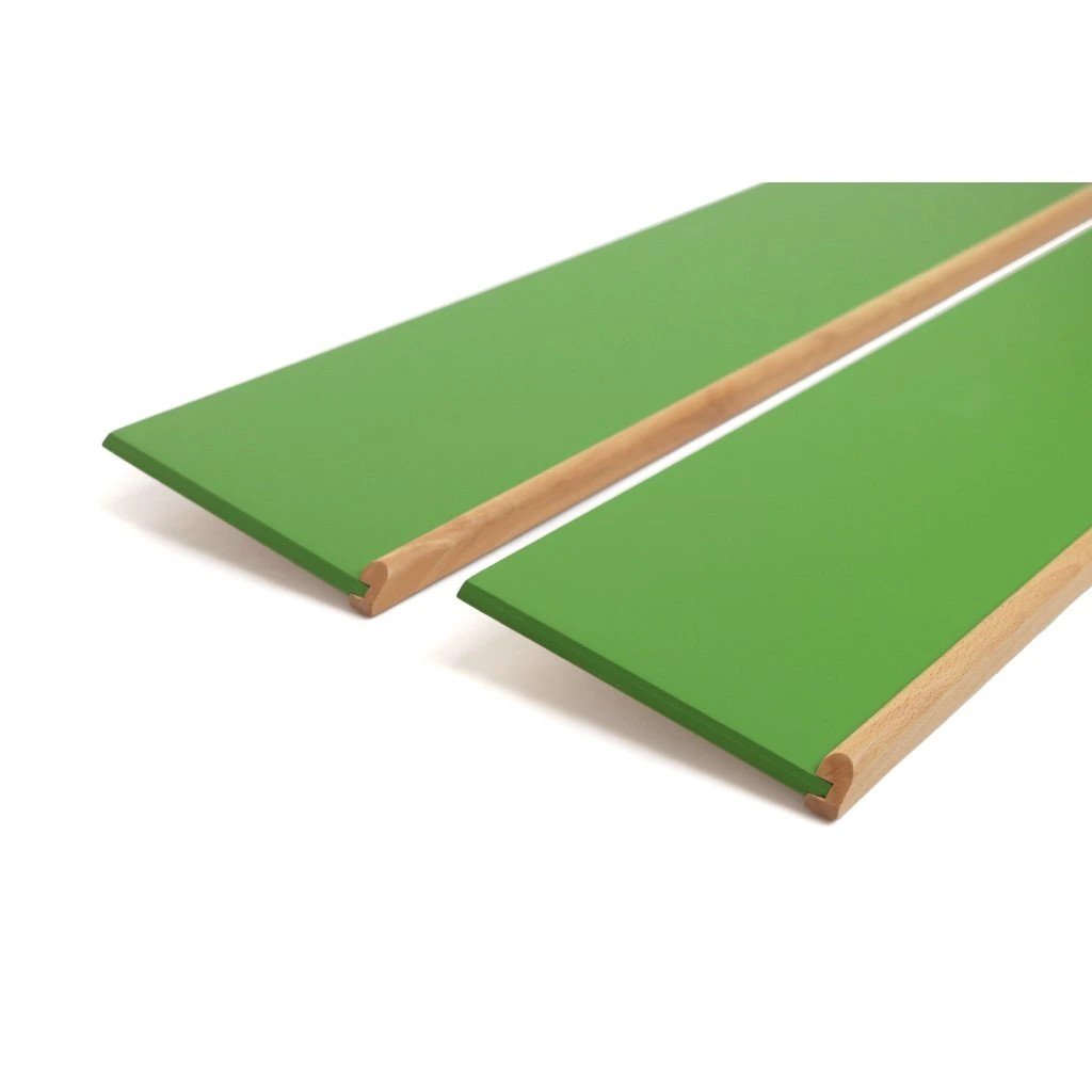Sada obsahuje dva dřevěné stojany v zelené barvě, které jsou navrženy pro uložení celé sady deseti zlomkových kruhů.