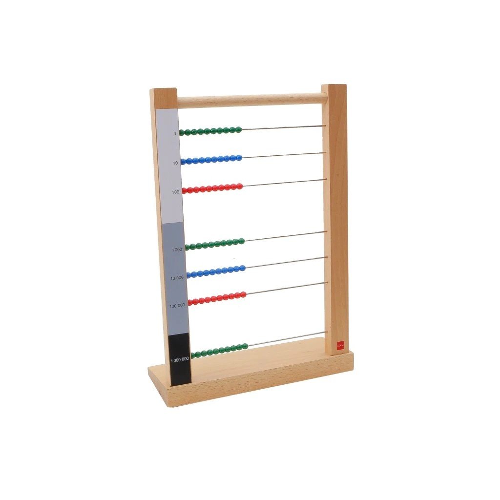 Rám je tvořen dřevěnou konstrukcí se sedmi vodorovnými drátky, na kterých je vždy deset korálků. Korálky mají hierarchické Montessori barvy, které dítěti pomáhají rozlišovat jednotlivé řády čísel a lépe pochopit strukturu desítkové soustavy.