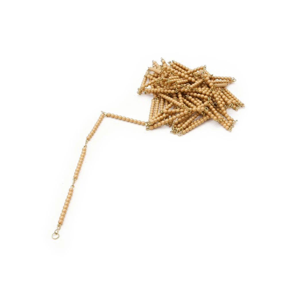 Zlatý perlový řetěz 1000 poskytuje dítěti konkrétní zkušenost s počítáním od 1 do 1000. Pomůcka umožňuje postupné a systematické počítání ve větším číselném rozsahu.