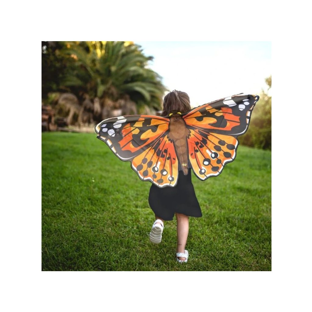 Dětská motýlí křídla, která lze upnout na záda a ruce. Děti pak mohou mávat křídly a poletovat po zahradě jako motýlek. Používat lze doma, na zahradních slavnostech nebo při vypouštění živých motýlků ze sady "Motýlí zahrádka". Představivosti se meze nekladou :) Křídla jsou vyrobeny ze 100% polysterové textílie, oka na ramena a prsty jsou z gumových pásků. Pozor - aby velikost motýlích křídel odpovídala vašemu dítěti, tak by vzdálenost od středu zad po prsty natažené ruky měla být cca 50cm. Tato vzdálenost může být i menší, ale neměla by být o moc větší. Rozpětí křídel: 110cm, výška křídel cca 50cm Vhodné pro děti od 4 let, nicméně přihlédněte na vhodné rozměry viz výše.