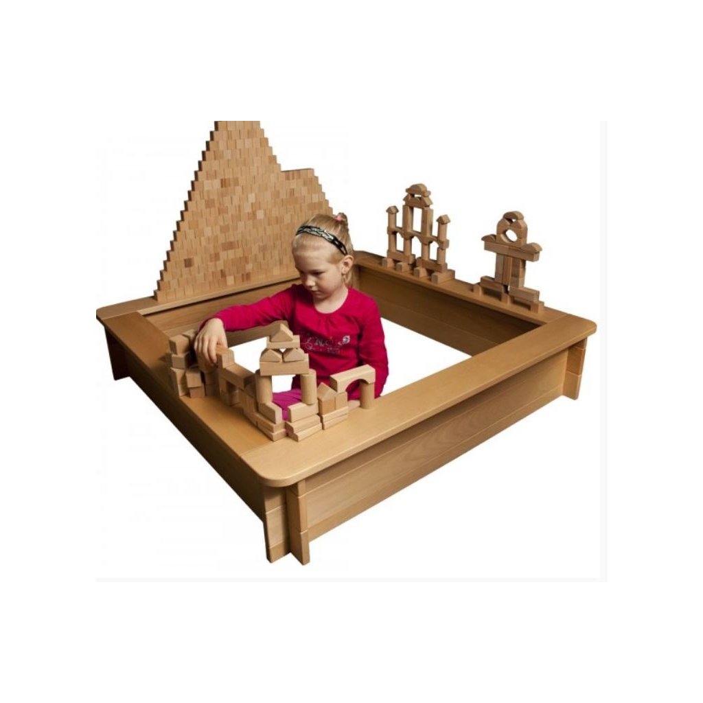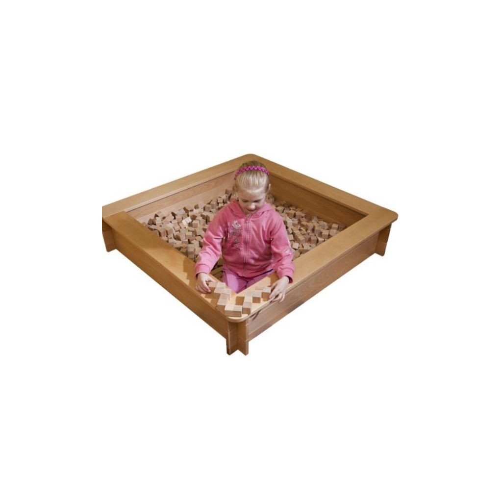 Kostkoviště vyrobeno z bukového dřeva a ošetřeno lakem. I když vypadá jako pískoviště, je určeno do interiéru a naplněno je dřevěnými kostkami na hraní. Balení obsahuje celkem 800 kostek různých druhů Pro ty, kteří by si nevěděli rady se skládáním, tu máme video s montáží . Vyráběné chráněnou dílnou výrobce dřevěných kostek v České republice. Rozměr: 120 x 120 x 24,5 cm